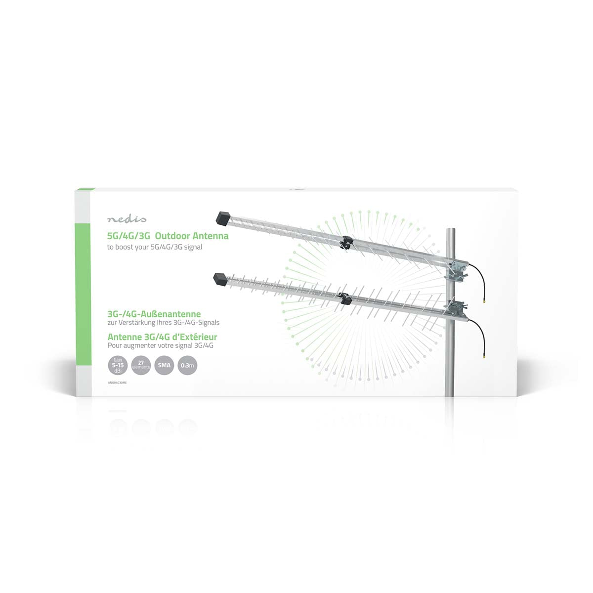 5G/4G/3G-antenne om de datacommunicatie te verbeteren en de data-overdrachtsnelheid te vergroten van het 5G/4G/3G- en GSM-signaal, via een dubbele frequentieband. De antenne is voorzien van 30 cm lange HSR200 low-loss kabels voor een hoogwaardige ontvangst van het 4G-signaal. Monteer de antenne buitenshuis voor een optimaal resultaat.