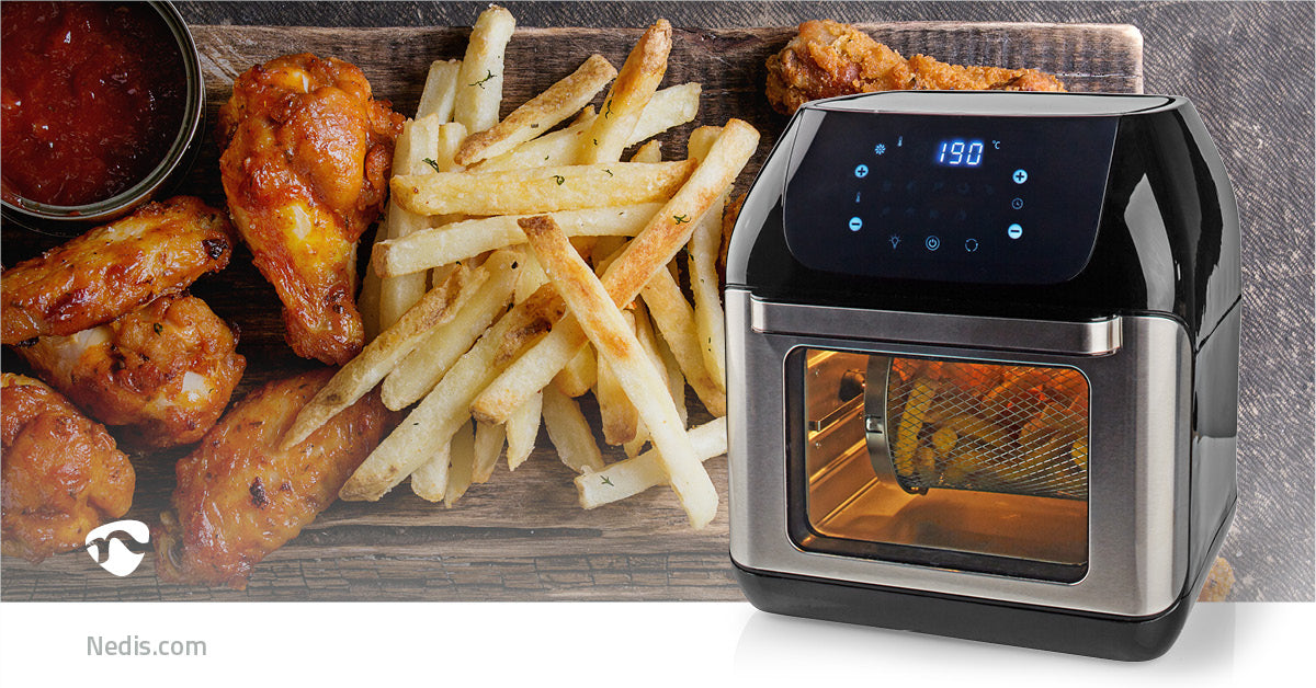 Met deze Nedis heteluchtfriteuse-oven kun je eenvoudig de lekkerste maaltijden op een gezonde manier bereiden, vooral omdat er dankzij de heteluchtcirculatietechnologie geen olie meer nodig is bij het bereiden van patat, vlees, vis en groenten. Deze heteluchtfriteuse-oven is een multifunctioneel keukenwonder dat kan grillen, bakken, frituren, roosteren en zelfs ontvochtigen.