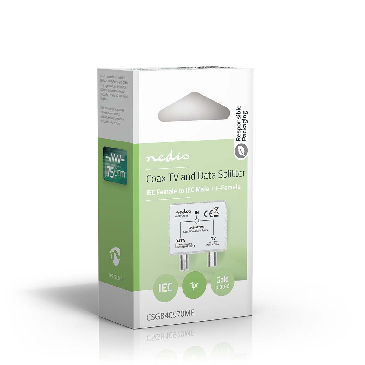 Deze Nedis Coax TV en Data Splitter splitst 1 coax signaal in 2 stabiele coax signalen voor je TV en internet verbindingen.