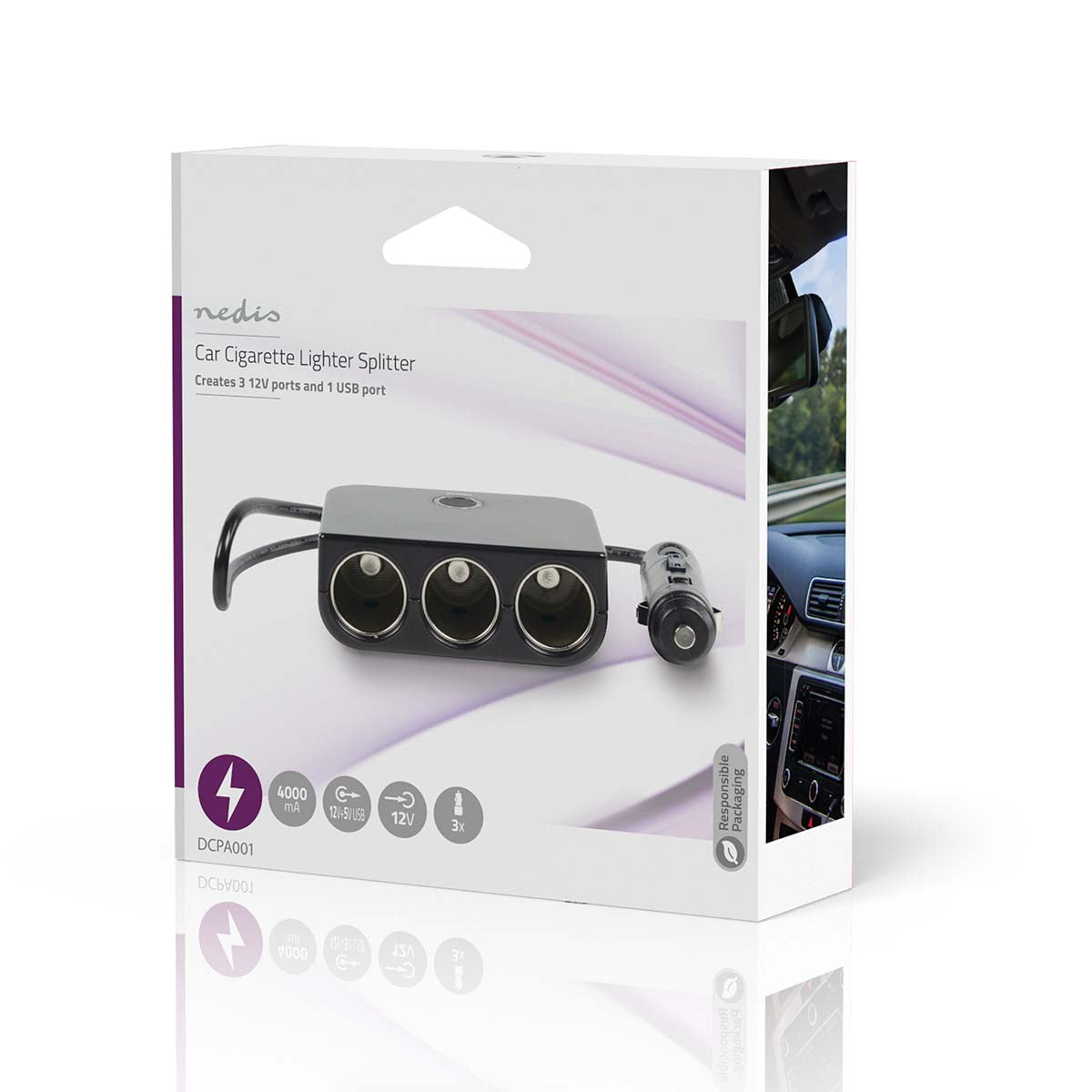 Converteer je 12 V sigarettenaansteker naar een drie 12 V DC aansluitingen en een USB-uitgang. De USB-uitgang maakt het mogelijk om je digitale apparatuur zoals mobiele telefoons, MP3-spelers, PDA’s en andere USB-apparatuur in je auto te laden. De splitter is beveiligd tegen overbelasting doormiddel van een zekering en de LED geeft aan of de adapter gevoed is.