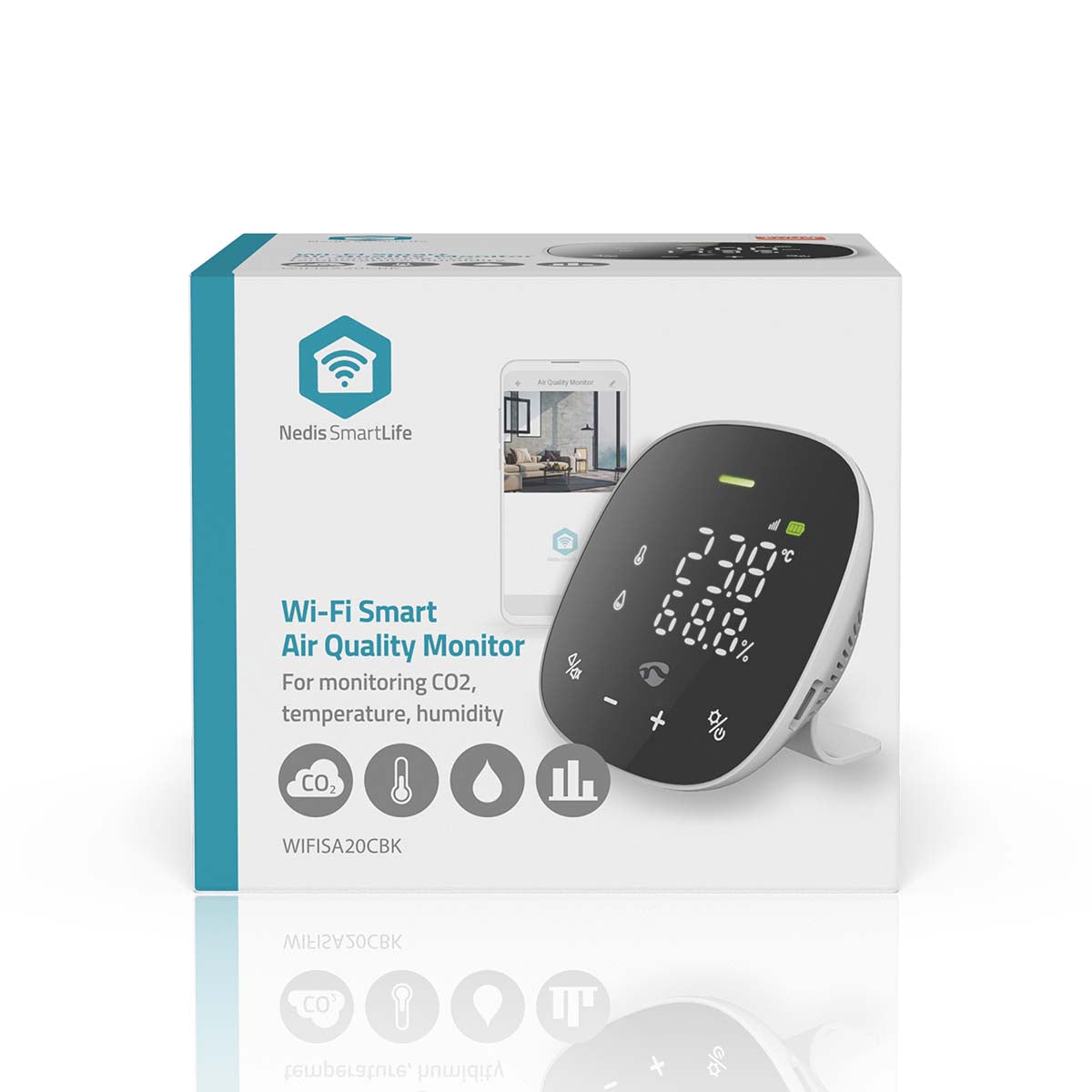 Deze Nedis Air Quality Monitor helpt je bij het analyseren en beoordelen van de ruimtelucht, ongeacht de persoonlijke perceptie. Het geeft u aanbevelingen voor actie op basis van de vastgestelde waarden om op korte termijn te kunnen reageren op veranderingen in de kwaliteit van de ruimtelucht en eisen. De ingebouwde luchtkwaliteitssensor bewaakt 24/7 het binnenklimaat, analyseert de concentratie van schadelijke stoffen en herinnert u op het juiste moment aan ventilatie. Het werkt als een belangrijke gegevenszender en als een modern en intelligent smart home-apparaat.