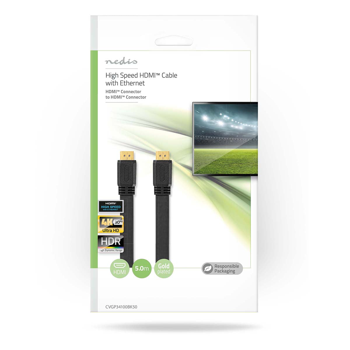 Platte High Speed HDMI-kabel met ethernet voor kristalheldere 4K-beelden tot 30Hz. Ideaal voor het netwerken van je apparaten en genieten van superieure beeldkwaliteit.