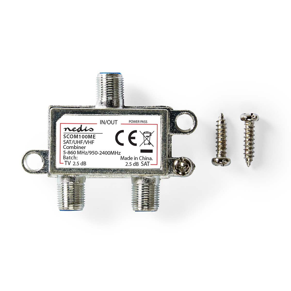 Combineer een satellietsignaal met een kabel-tv-signaal met deze SAT/UHF/VHF-combiner. Voorzien van power pass.
