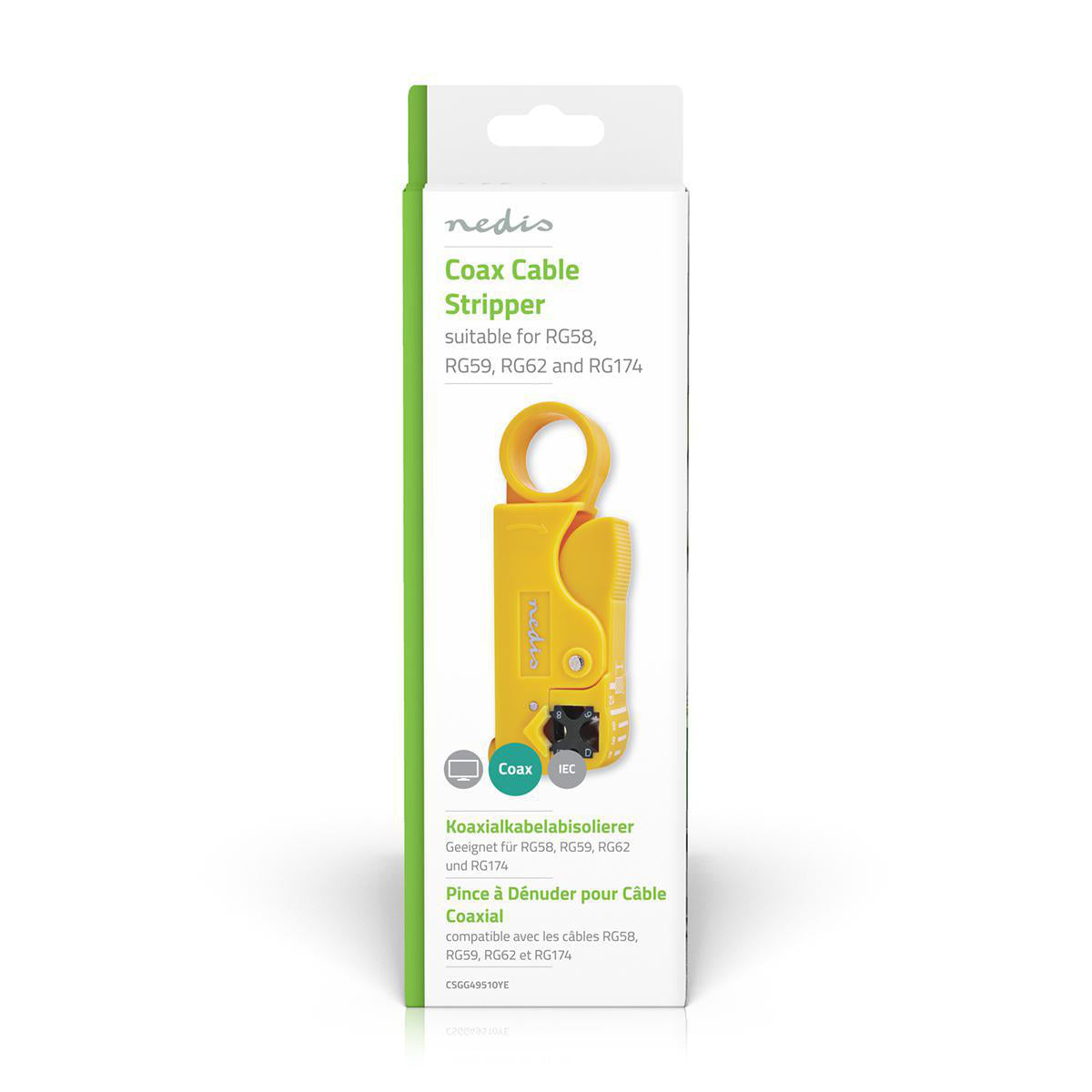 Deze volledig instelbare dubbelzijdige coaxkabelstripper verwijdert eenvoudig 4, 6, 8 en 12 mm kabelisolatie. Vergrendel simpelweg het gereedschap over de kabel, draai het rechtsom en trek het ongewenste gedeelte van de isolatie van de kabel.