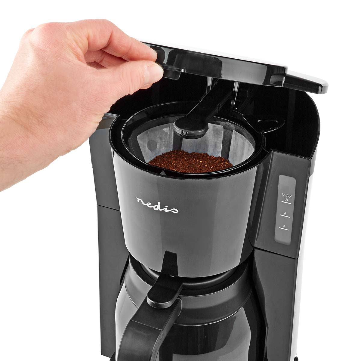 Dit koffiezetapparaat heeft een thermoskan met een stijlvolle zwarte afwerking, met een capaciteit van 1 liter, waardoor hij geschikt is voor 8 tot 10 koppen koffie. De thermoskan met glazen voering houdt verse, pas gezette koffie tot wel drie uur warm.