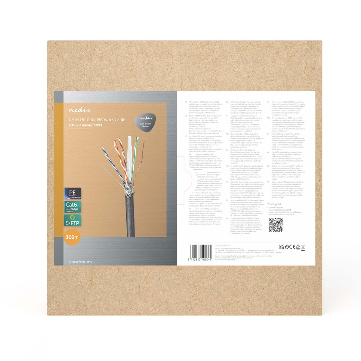 Premium CAT6 S/FTP netwerkkabel op rol met koperen kern. Volledig afgeschermd tegen storingen, geschikt voor 1000 Mbps netwerken. Ideaal voor vaste installaties.