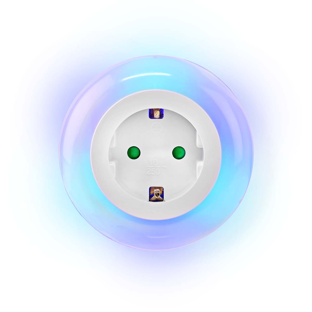 LED-nachtlampje met lichtsensor en extra stopcontact. Kies jouw favoriete kleur via touch-knop: wit, rood, blauw of groen. Handig en sfeervol in één!