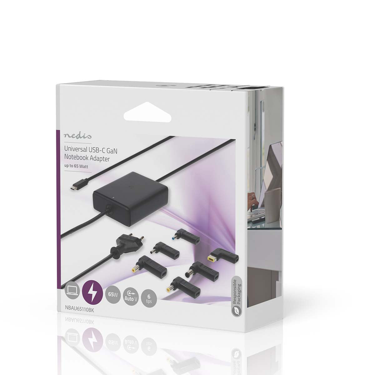 De Nedis 65W universele GaN notebook adapter is de perfecte metgezel voor uw notebook of netbook. Met deze adapter kan een USB Type-C™ kabel gebruikt worden om een laptop op te laden. De hoek van 90° voorkomt het buigen van de kabel en door de kleine afmetingen is de adapter een ideale metgezel voor onderweg.