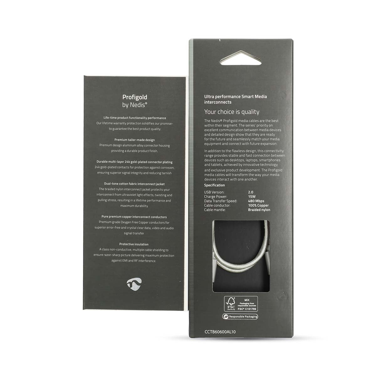 Nedis Fabritallic USB-C kabel met premium design: 24k vergulde contacten, zuiver koper geleiders en nylon mantel. Levenslange garantie op superieure dataprestaties tot 480 Mb/s.