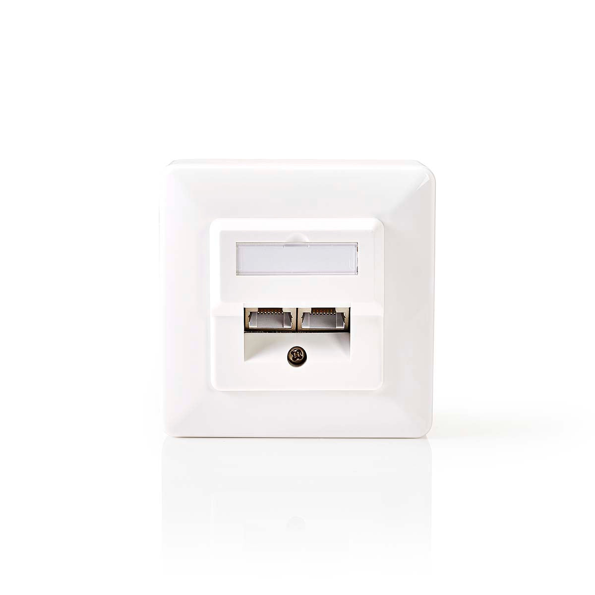Deze RJ45-muurplaat met 2 RJ45-netwerkverbindingen kan op een oppervlak of op een spoel worden gemonteerd. De muurplaat is geschikt voor CAT 5- en CAT 6-kabels.