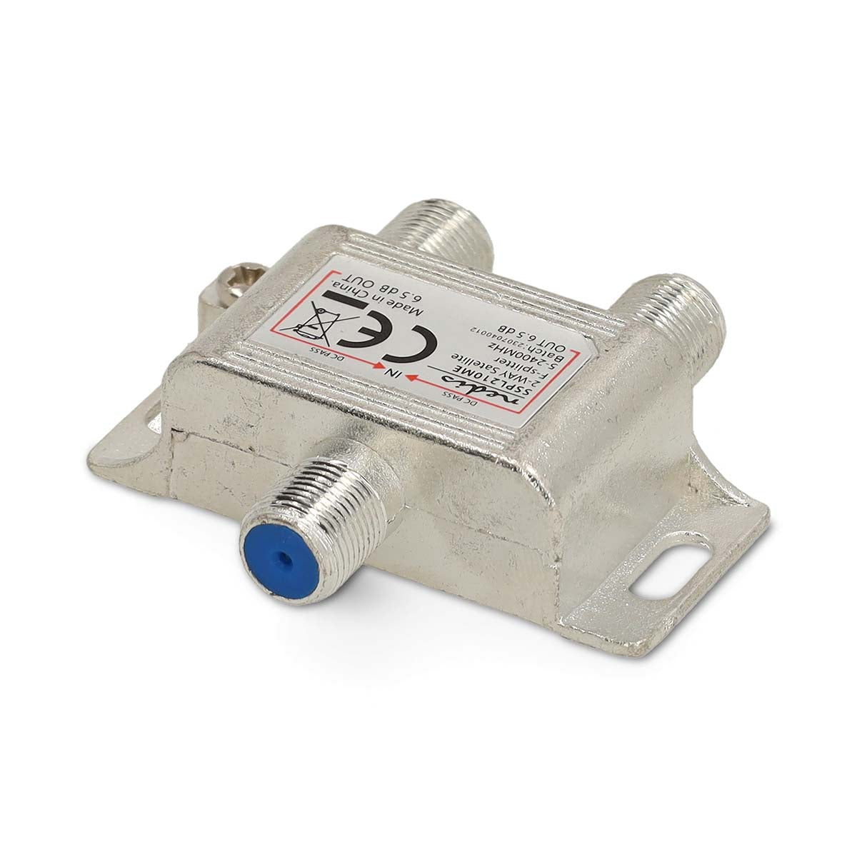 Verteilen Sie Ihr Satellitensignal mühelos auf mehrere Geräte mit diesem hochwertigen Verteiler. Robustes Metallgehäuse und DC-Durchführung für optimale Leistung.