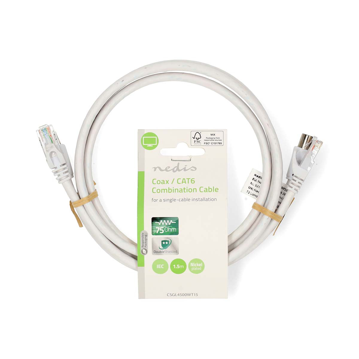 Coax & Cat6 Kombikabel IEC (Coax) Stecker / RJ45 Stecker - IEC (Coax) Buchse / RJ45 Stecker - Vernickelt - 1.50 m