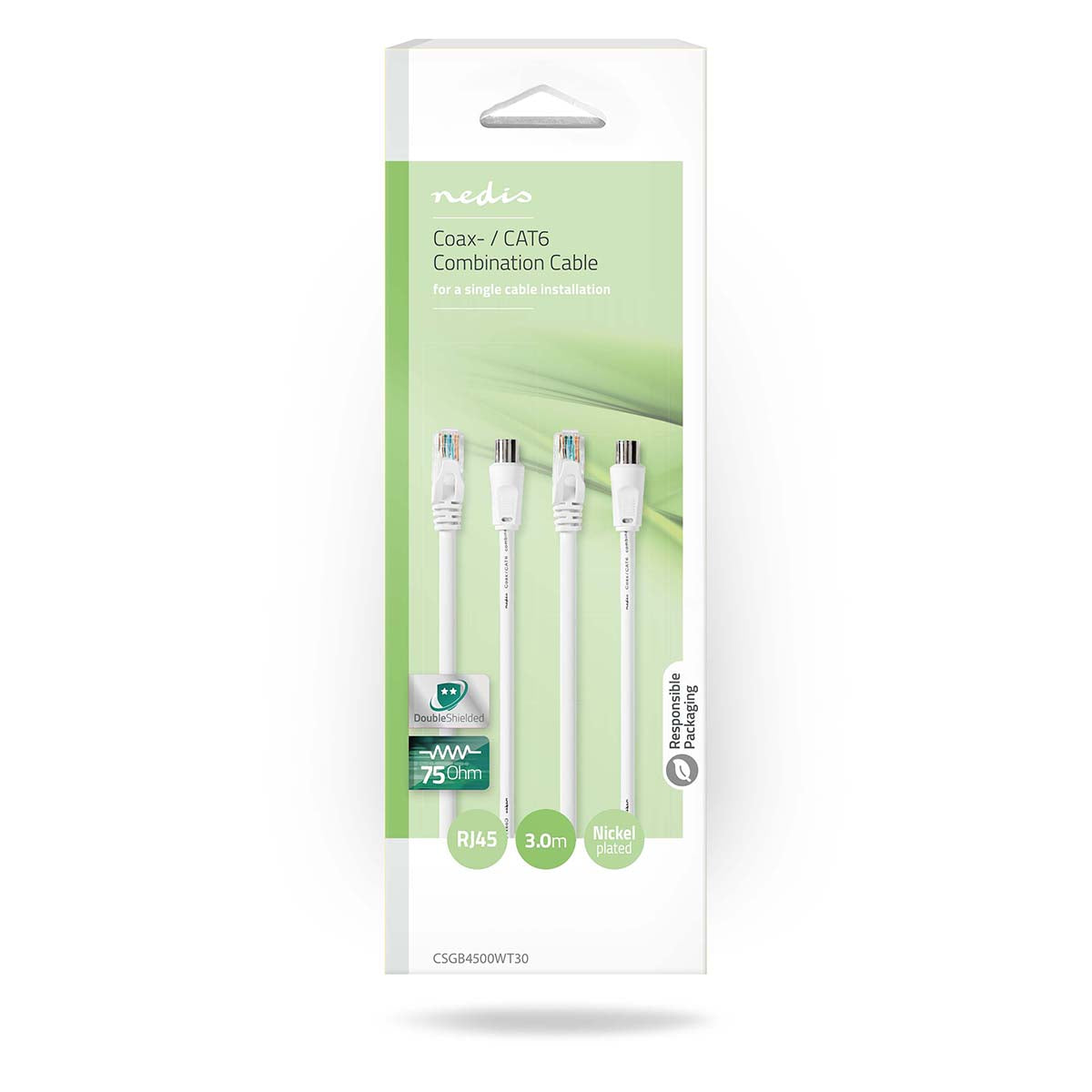 Coax & Cat6 Kombikabel IEC (Coax) Stecker / RJ45 Stecker - IEC (Coax) Buchse / RJ45 Stecker - Vernickelt