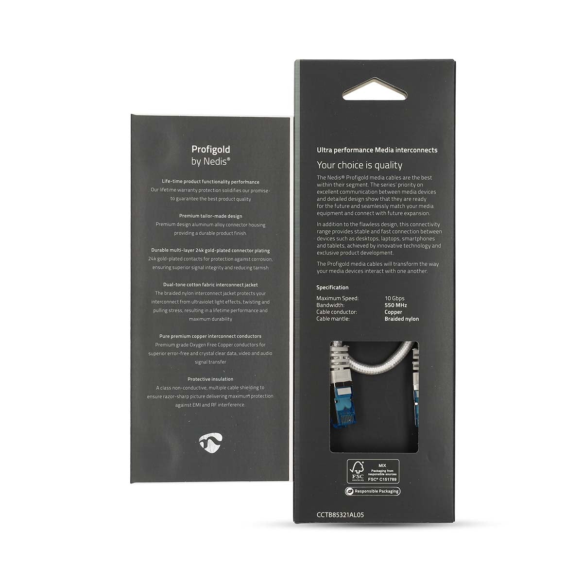 Das Kabel ist mit einem hakenlosen Stecker ausgestattet und die vollverdrillten Kupferadern werden "gerade" angeschlossen. Der Mantel ist halogenfrei (LSZH). Das geflochtene Nylonkabel schützt sowohl vor UV-Lichteffekten als auch vor Verdreh- oder Zugbelastungen, was zu einer lebenslangen Leistung und maximaler Haltbarkeit führt.