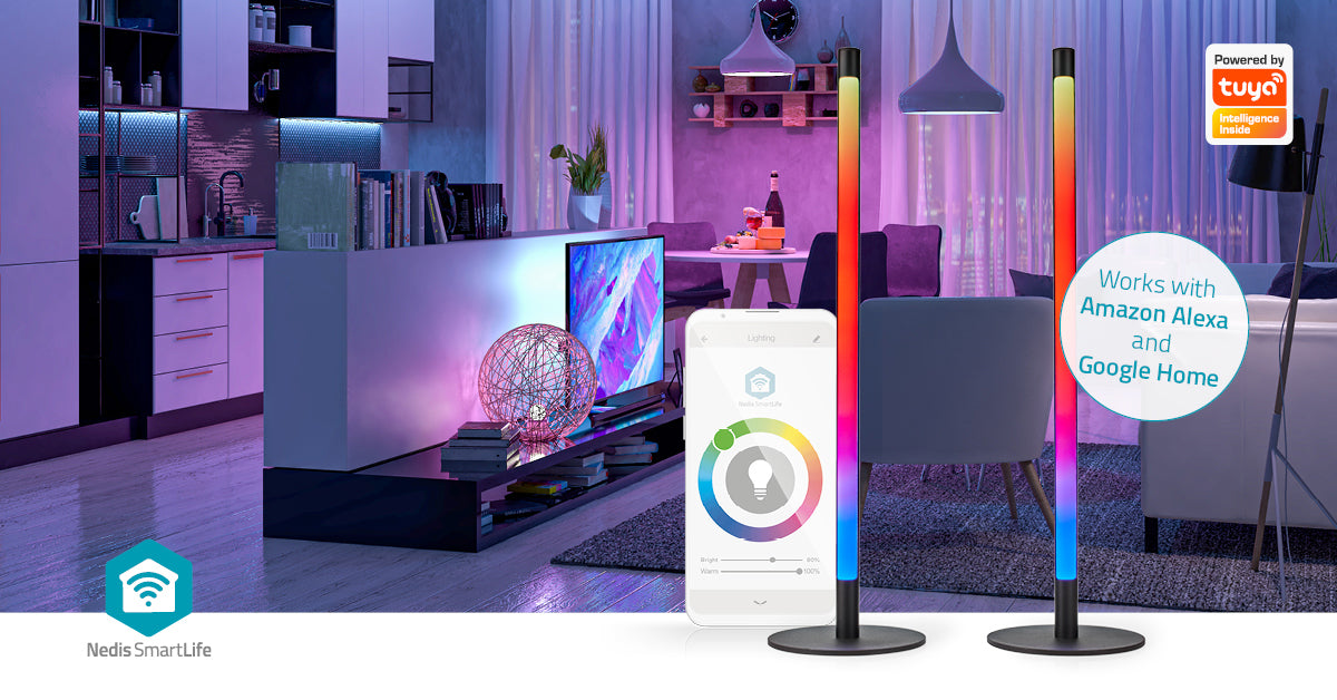 Beide Tischleuchten haben insgesamt 72 LEDs, was besonders gleichmäßige Farbmodi ermöglicht. In der Nedis SmartLife-App können Sie zwischen 12 voreingestellten dynamischen Modi oder 12 voreingestellten statischen Modi wählen. Darüber hinaus können Sie die Farbtemperaturen anpassen, um Ihrer Beleuchtung mehr Atmosphäre zu verleihen. Die Farbtemperaturen reichen von 2700-6500 K und umfassen somit wärmere und kühlere Modi. Die Lampen eignen sich daher für jegliches Umgebungsszenario, wie etwa das Schlafzimmer, den Gaming-Raum, aber auch für Heimbüros oder Lernumgebungen. Die Lampe unterstützt auch Sprachbefehle über Siri shortcuts, Amazon Alexa oder Google Home.