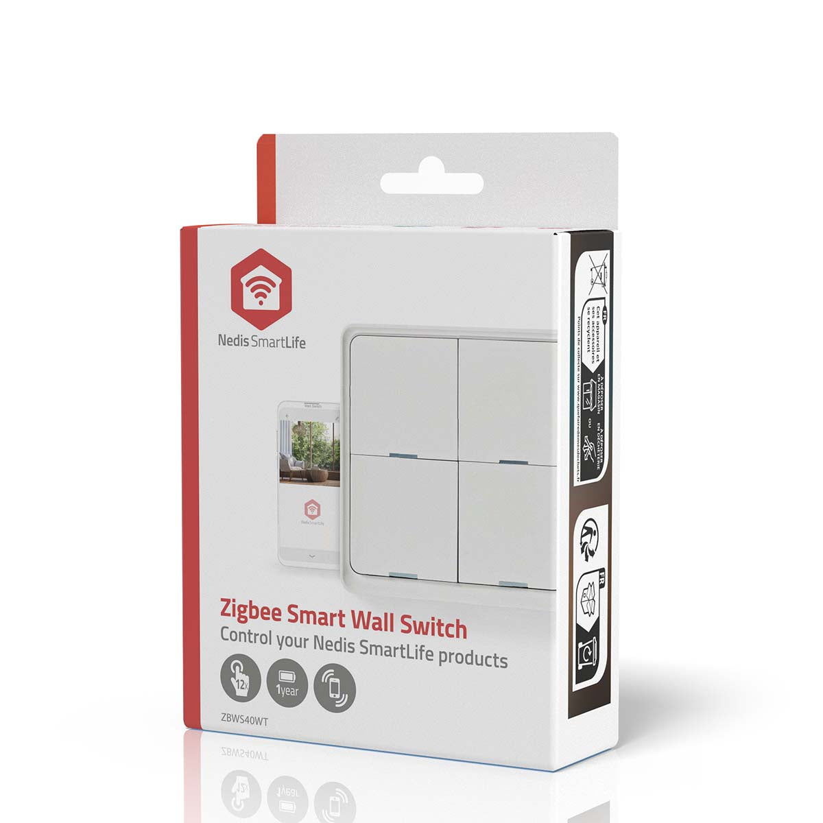 Intelligenter Zigbee-Wandschalter mit 4 Tasten und 12 Funktionen. Steuern Sie alle Ihre SmartLife-Geräte kabellos. Einfache Wandmontage, Batterie hält 12 Monate.