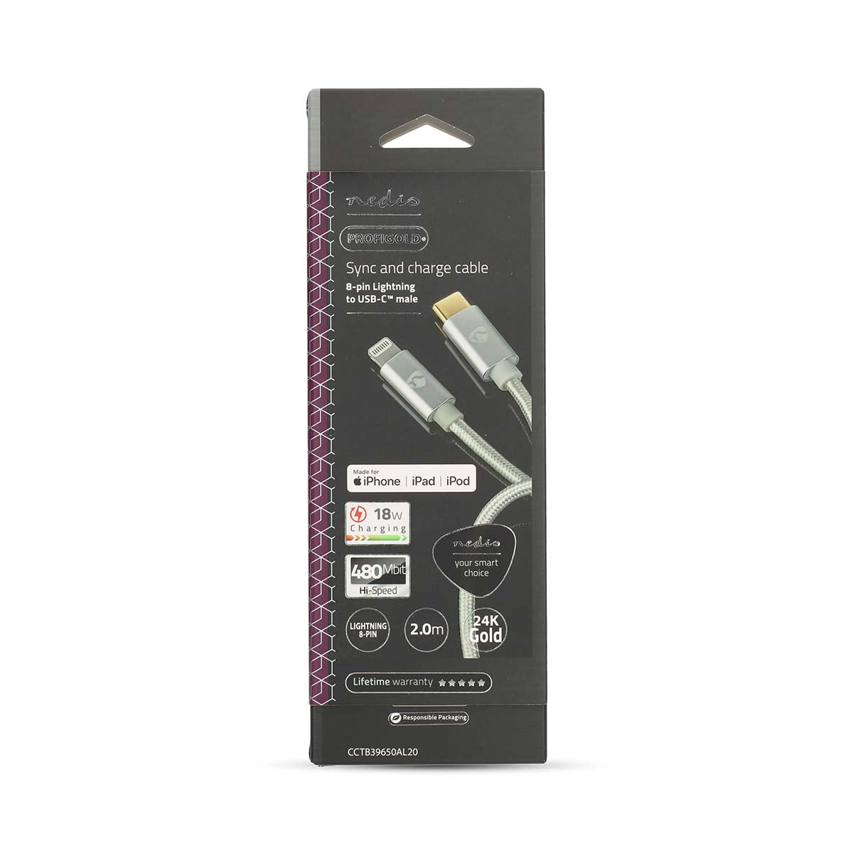 Apple-zertifiziertes USB-C-auf-Lightning-Kabel mit lebenslanger Garantie. Schnellladen, langlebige Nylonummantelung mit Aluminiumanschlüssen. Profigold-Qualität für dein iPhone/iPad.