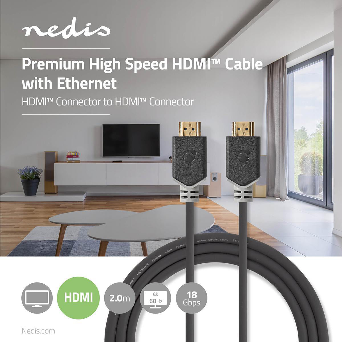Dieses Nedis Premium-zertifizierte High Speed HDMI™-Kabel mit Ethernet unterstützt die Bandbreite von 18 Gbit/s und ist mit dem offiziellen Premium-Label versehen. Für den Endverbraucher ist dieses Label eine Garantie dafür, dass er die richtigen und für den vorgesehenen Einsatzzweck geeigneten Kabel erwirbt.