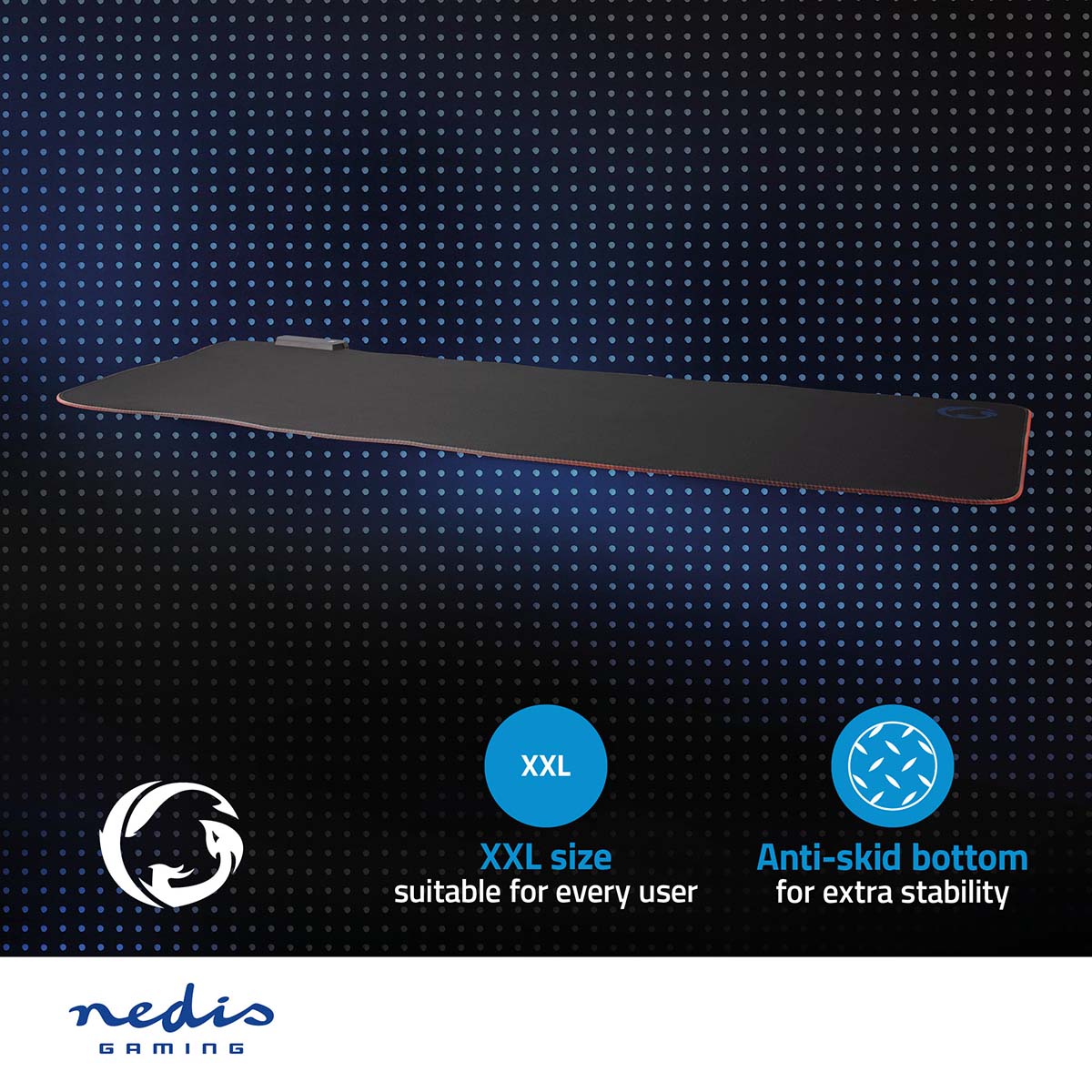 Dieses Gaming-Mousepad von Nedis bietet die bestmögliche Leistung. Die glatte Oberfläche und die rutschfeste Unterseite sorgt mit jeder Art von Maus für das bestmögliche Spielerlebnis. Das LED-Licht im Inneren kann an Ihre Lieblingsstimmung angepasst oder sogar auf Farbwechsel eingestellt werden, sodass Sie mit jeder Farbe Spaß haben. Dank seiner XXL-Größe ist es für jede Person geeignet.