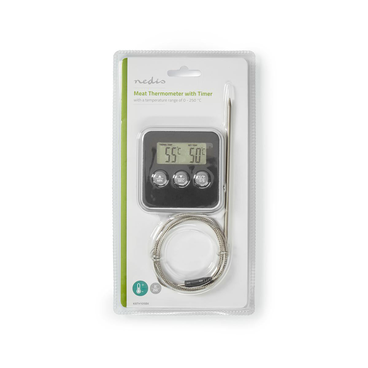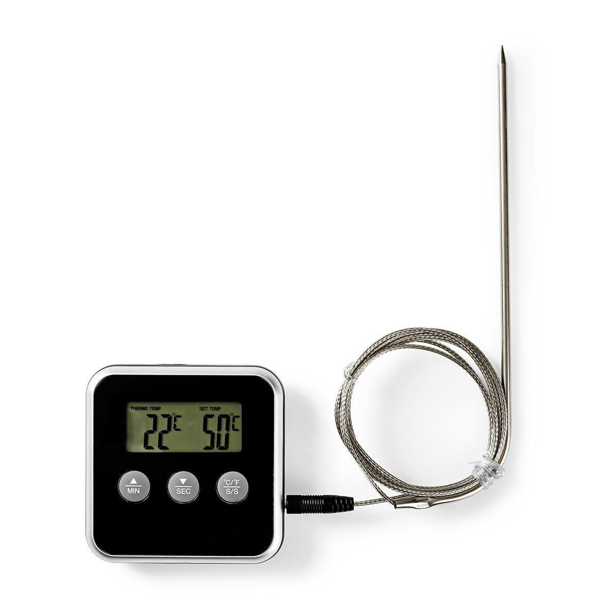 Das Fleischthermometer verfügt über einen Timer, sodass Sie es auch als Eieruhr verwenden können. Die Edelstahlsonde ist hygienisch, einfach zu reinigen und kann zur einfachen Aufbewahrung abgenommen werden.