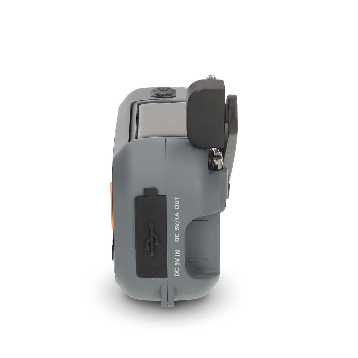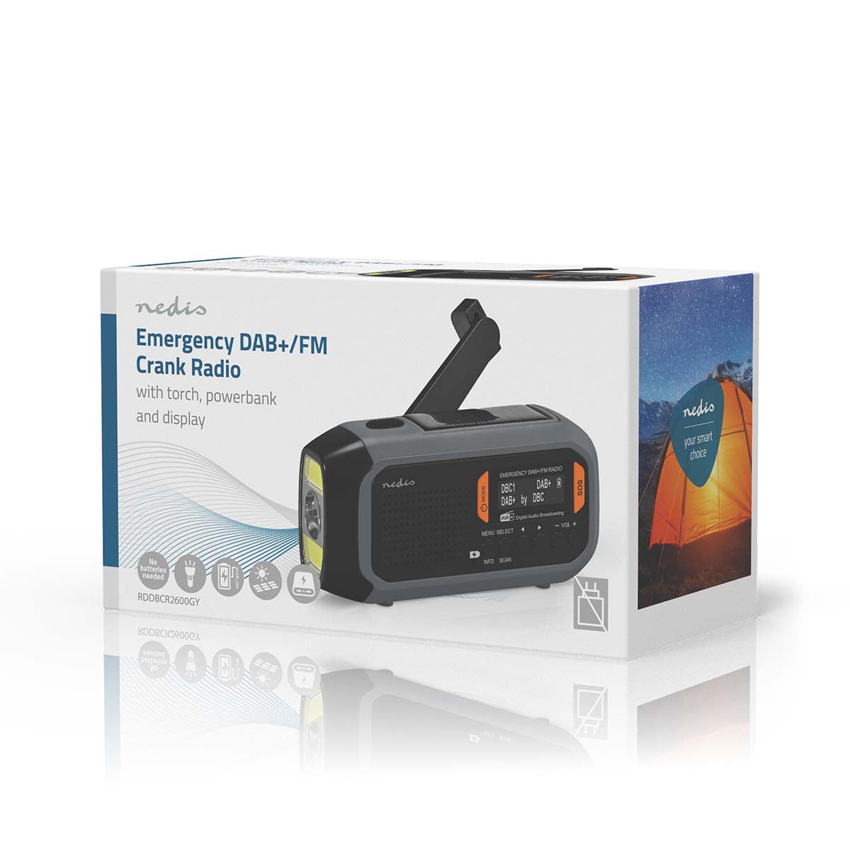 The portable emergency DAB+/FM crank radio is versatile in terms of power sources, you can charge it through the hand crank dynamo, solar panel, or USB-C cable. The built-in 2500 mAh lithium battery can also be used as a power bank to charge your mobile devices while on the go.