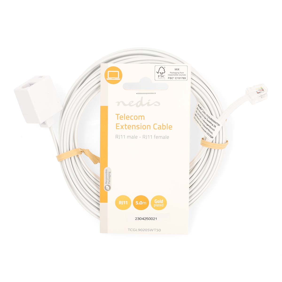 Verlängern Sie Ihr Telefonkabel einfach mit diesem praktischen RJ11-Verlängerungskabel. Flaches Design für diskrete Verlegung. Plug & Play Anschluss zwischen Gerät und Wandsteckdose.