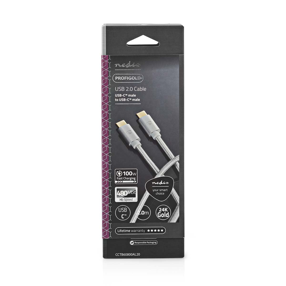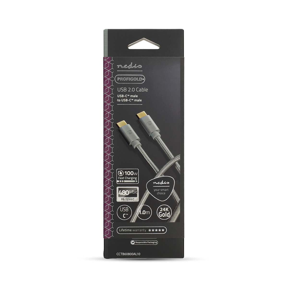 Premium USB-C-zu-USB-C-Kabel mit 24-karätig vergoldeten Steckern und Nylonmantel. Schnelle Datenübertragung bis zu 480 Mb/s. Lebenslange Garantie. Langlebiges Aluminium-Design.