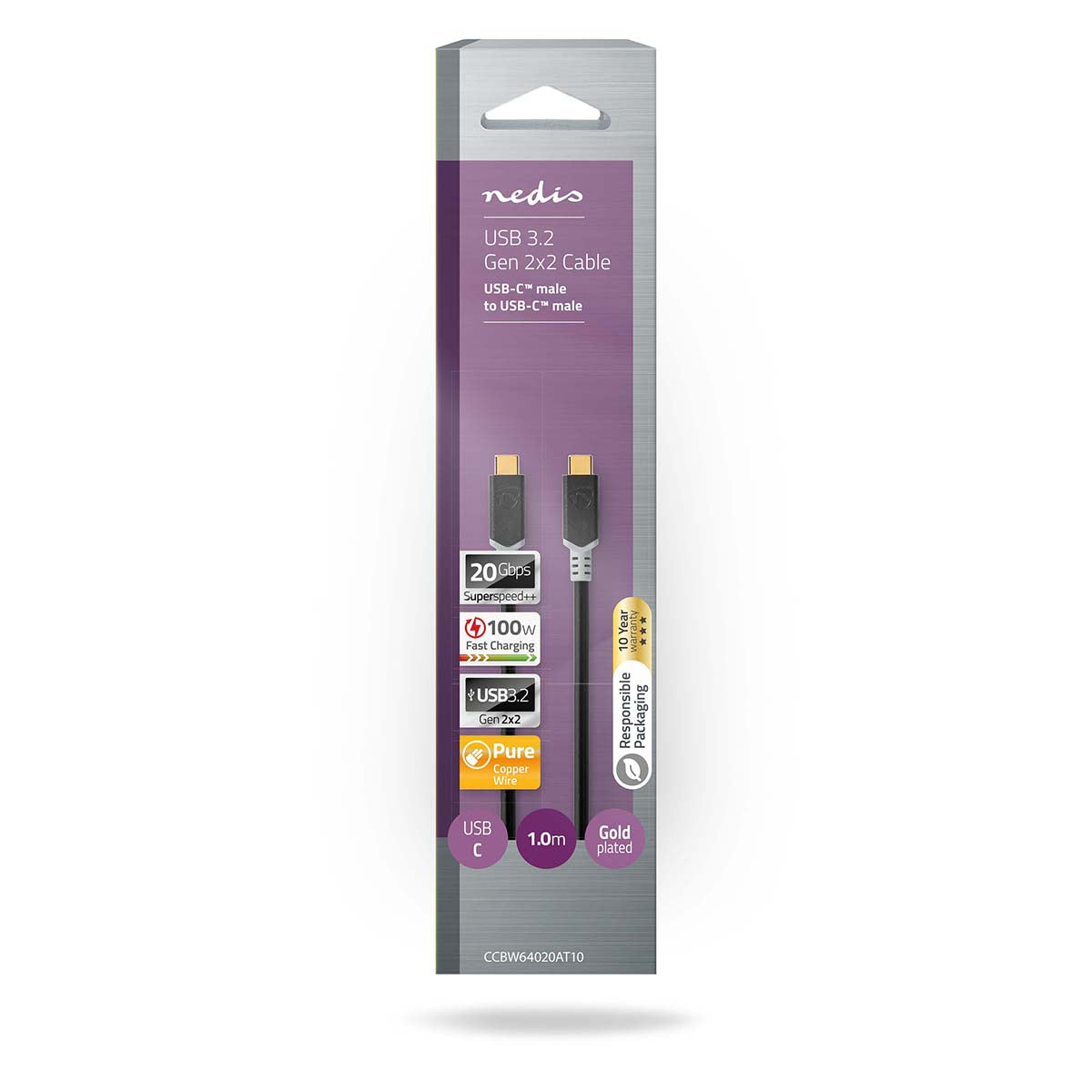 Ultraschnelles Laden und Datenübertragung mit 20 Gbps Geschwindigkeit und 100W Leistung. Goldene Anschlüsse für optimale Leistung. Geeignet für alle USB-C Geräte.