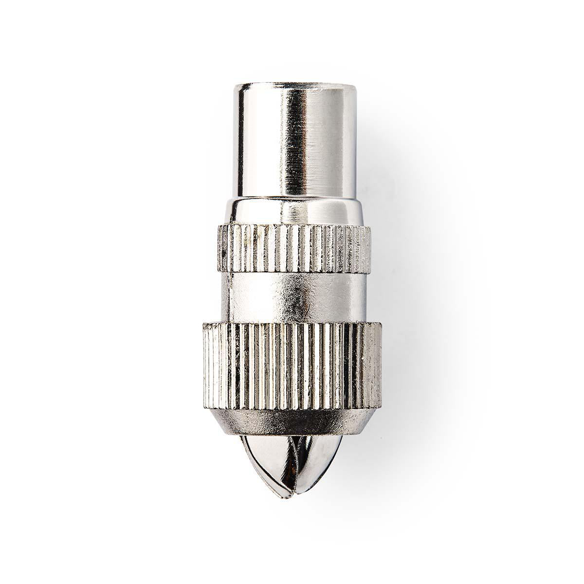Simply mount this nickel-plated female IEC coax connector on your coax cable for a stable and durable connection. High quality for perfect TV and radio signal!