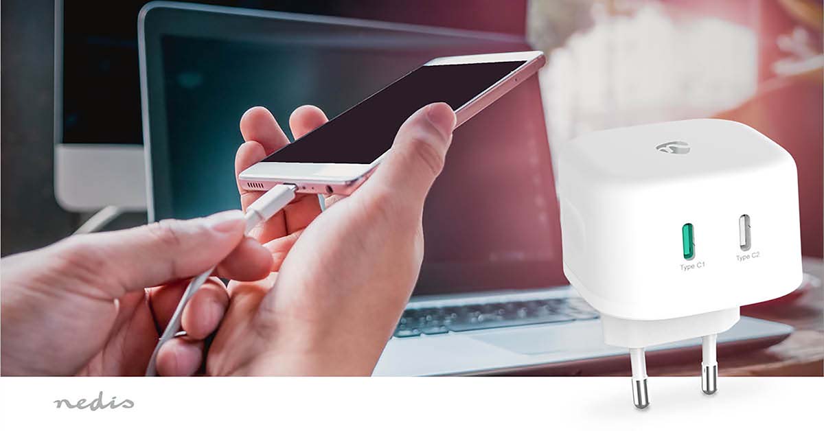 This Nedis USB-C GaN wall charger allows you to charge two tablets or smartphones at once or a USB device like Nintendo Switch at the same time. This 45 Watt charger works with USB Power Delivery technology for charging your device faster and more efficiently.