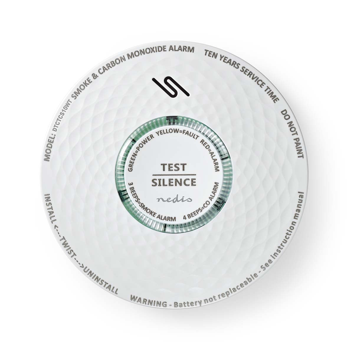 It is strongly recommended to test the functionality on a regular basis. To make things easy, this smoke alarm features a big button on the front to test the alarm.