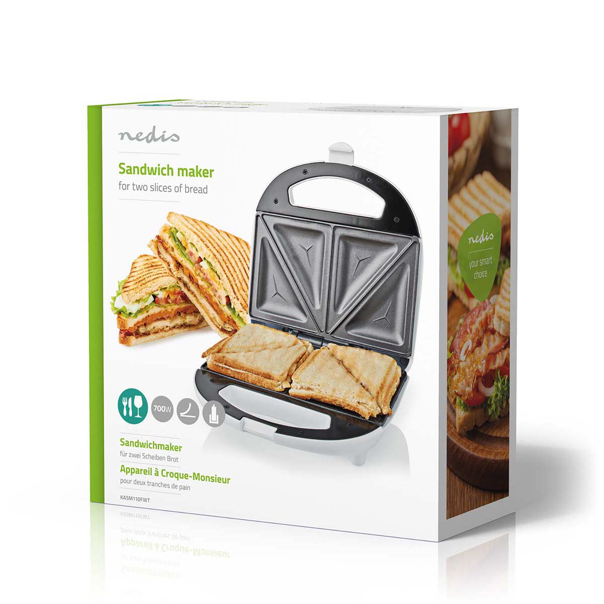 Sandwich Maker 700W - 20.5 x 12 cm - Automatic temperature control