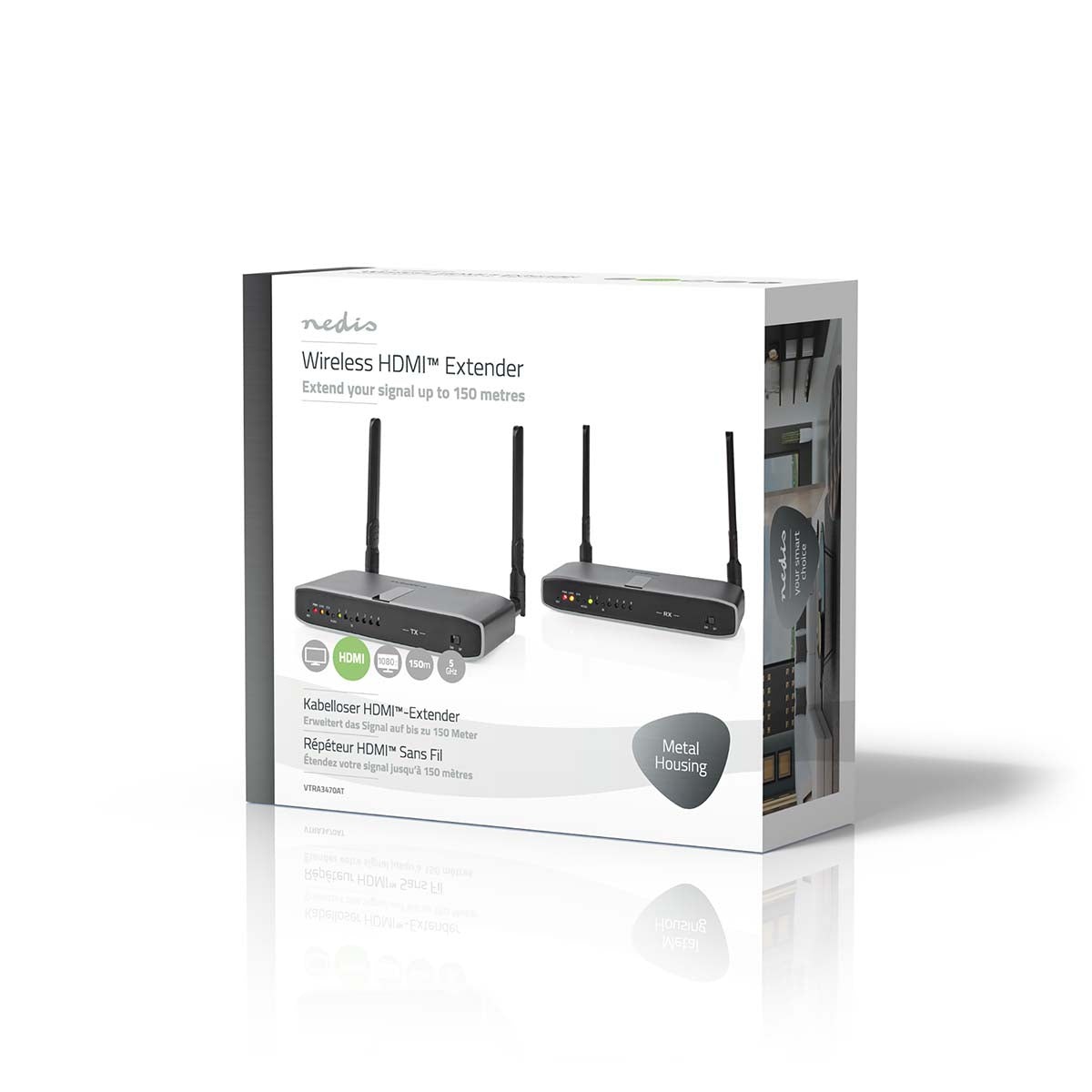 This Nedis Wireless HDMI™ extender offers wireless HDMI™ signal transmission of connected audio/video equipment to a TV or beamer up to a distance of 150 metres. The HDMI™ signal even passes through walls and ceilings. Ideal when a cabled connection is not possible or when you don’t want to pull a cable connection. With the wireless extender, you can have a TV signal anywhere in the house without having a television connection at this location.
