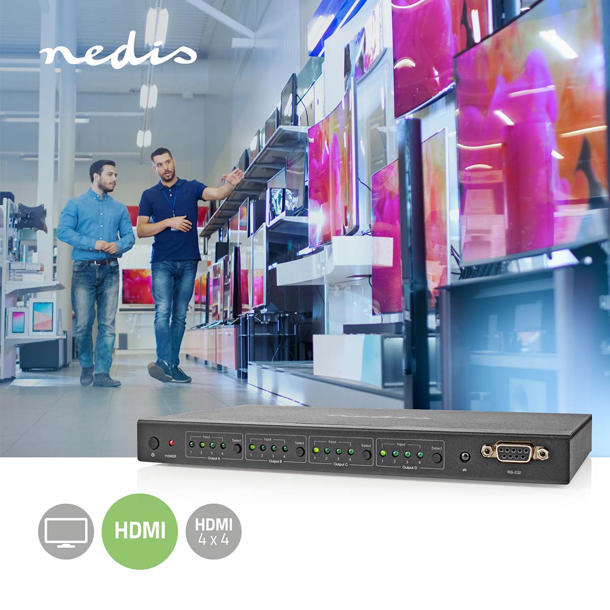 HDMI™ Matrix Switch 4 x 4 port(s) - DC Power / 1x RS232 / 4x HDMI™ Input - 4x HDMI™ Output