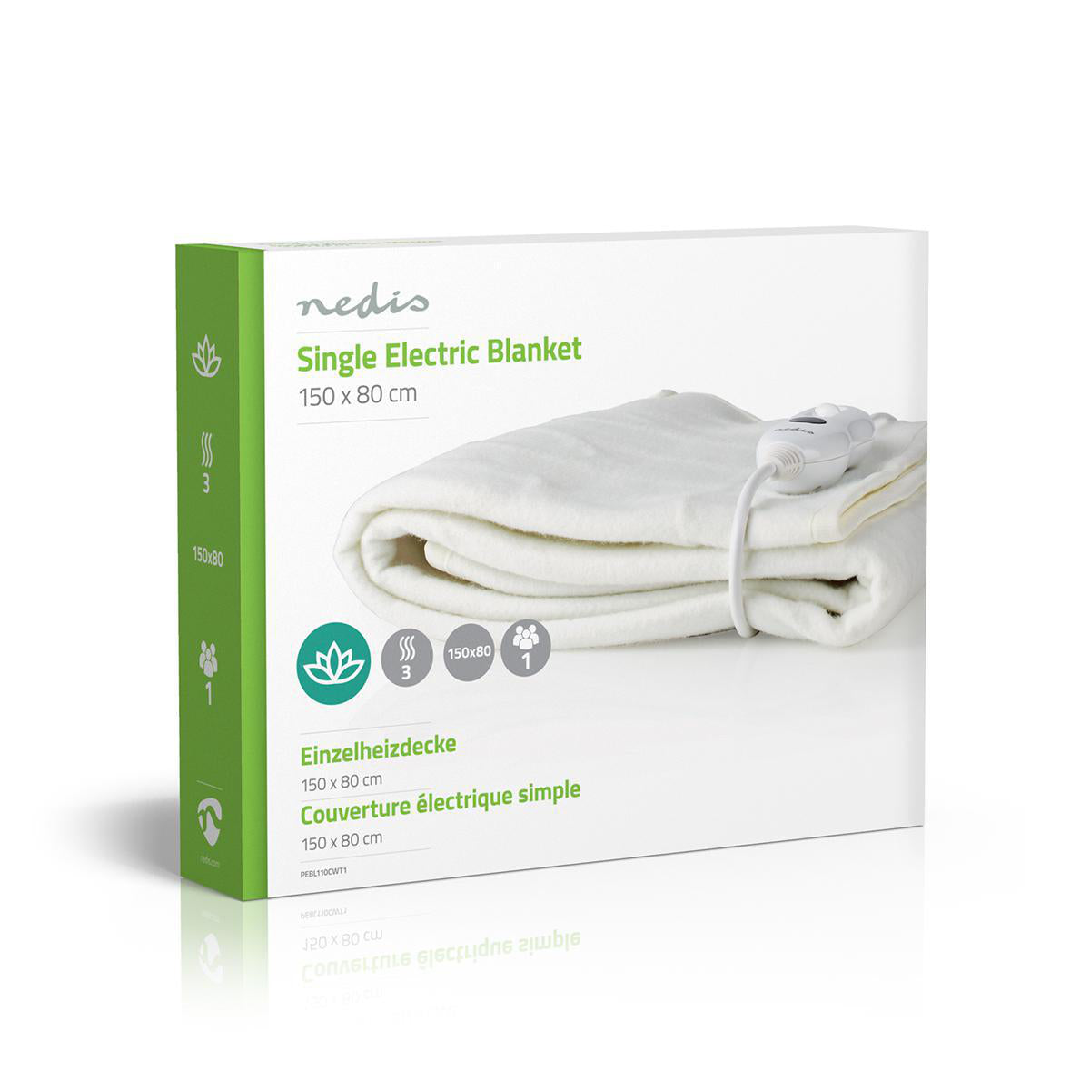 This Nedis 1-person electric heat blanket ensures you will have a comfortably pre-heated bed in the evening. The 150 x 80 cm single underblanket is made of polyester and is easy to put under the sheet to preheat the bed. This safe, high-quality blanket will keep you nice and warm in the cold days. The blanket is suitable for 1 person and is equipped with a controller so that the temperature can be adjusted to your liking. The controller has three heat settings and illuminated indicator. Because the controller is detachable, it is possible to wash the blanket.