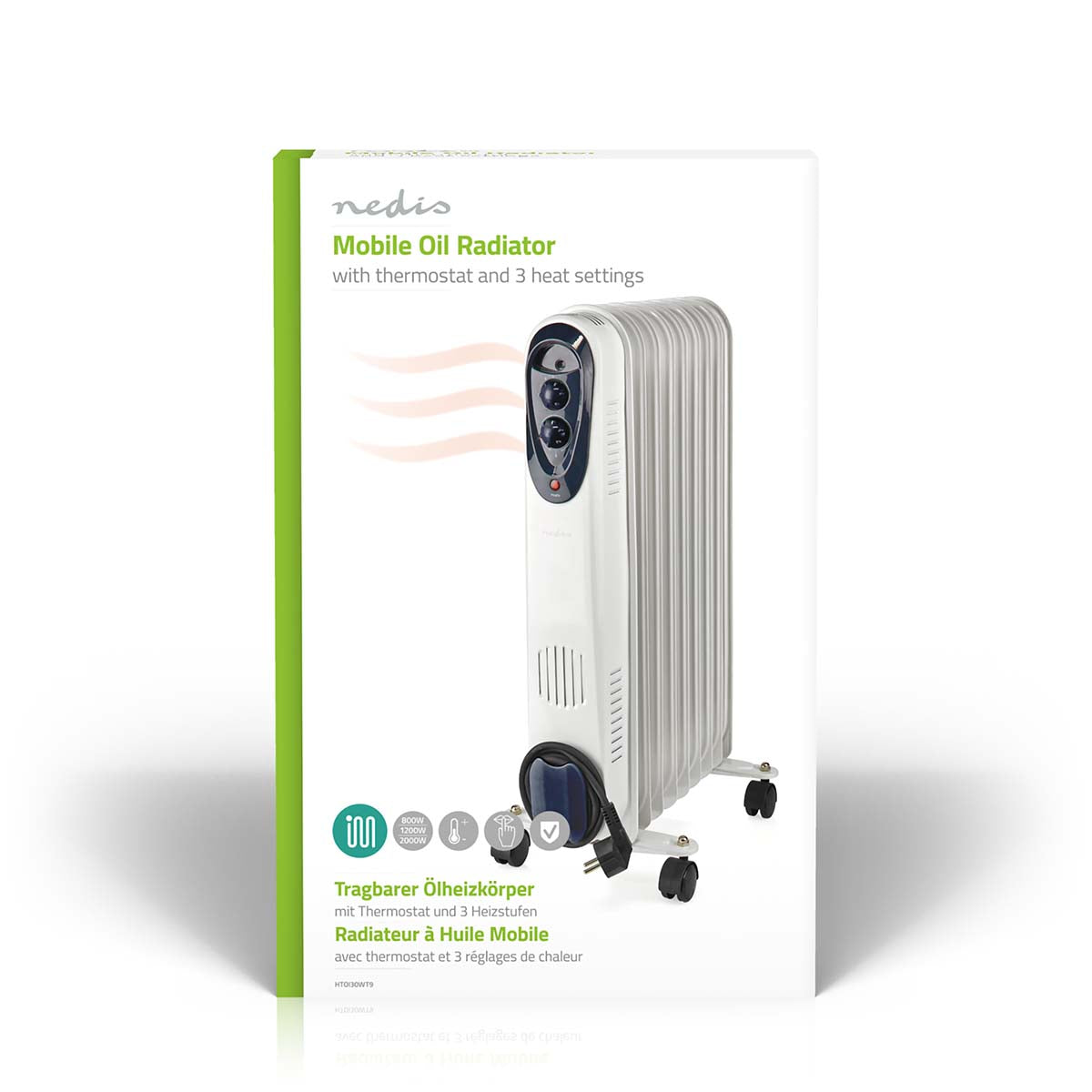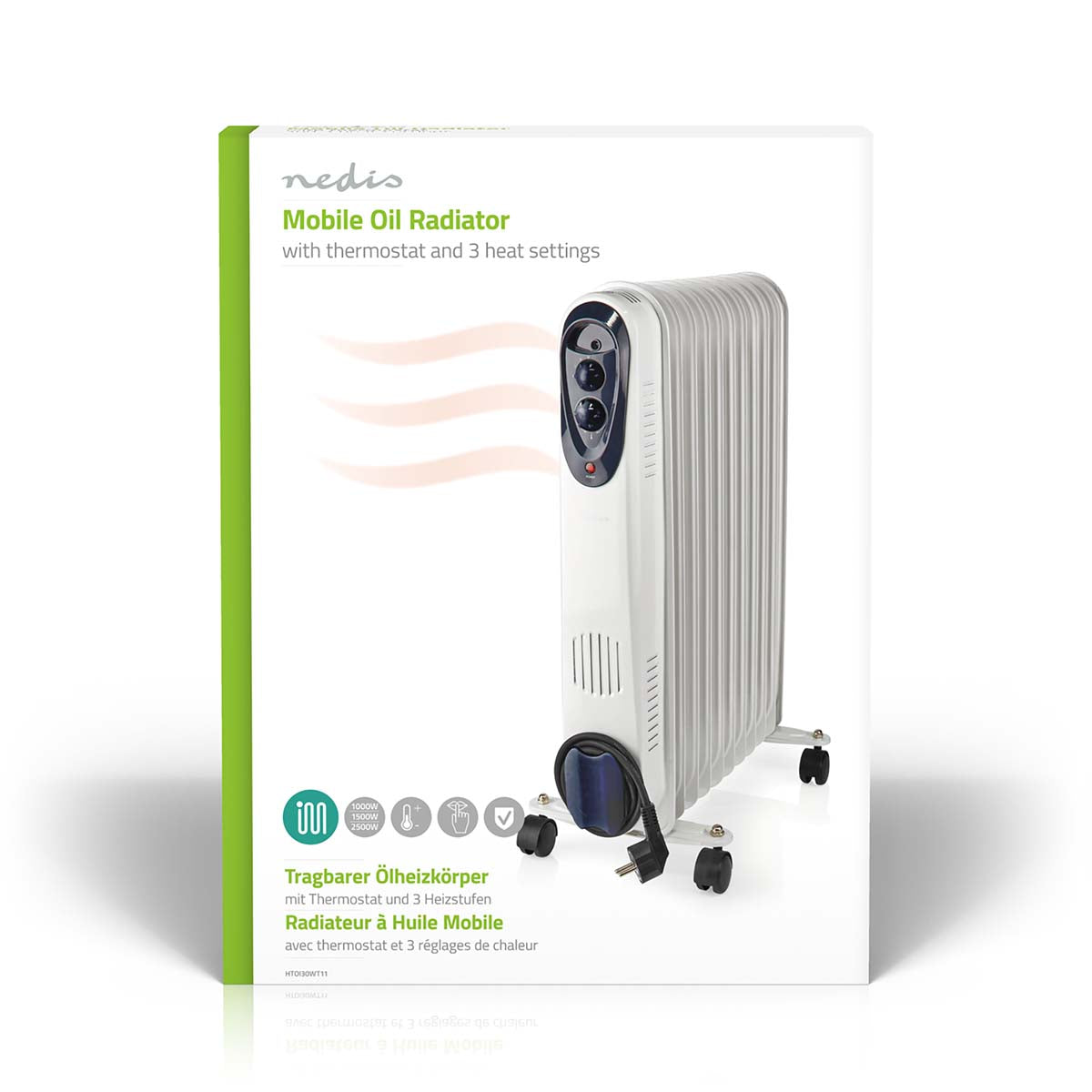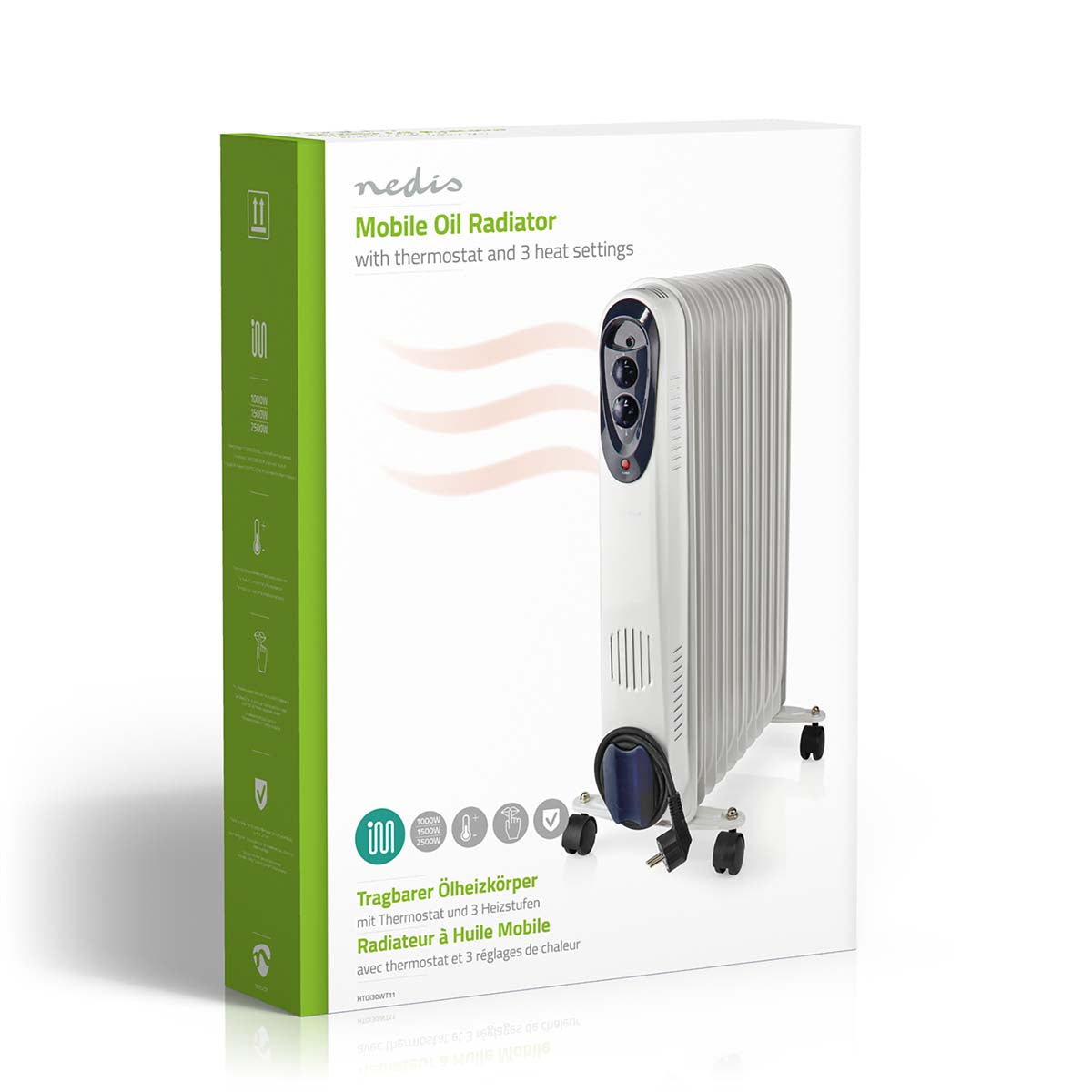 This Nedis oil-filled mobile radiator provides an additional and comfortable heat source, which is silent and efficient. The radiator is equipped with three power settings and a thermostat to adjust the temperature as preferred. Furthermore, smooth-running wheels and a handgrip make it easy to move the radiator around, creating a mobile heating solution that fits in even the smallest rooms.