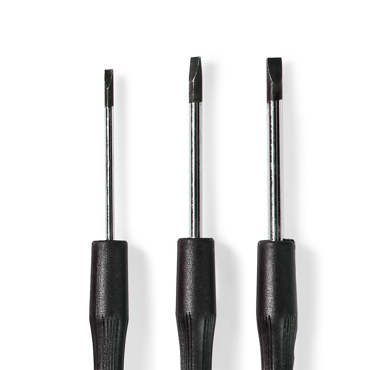 Precision screwdriver set, with the most common screw heads in different sizes. Equipped with swivel top handles for accurate application/use.