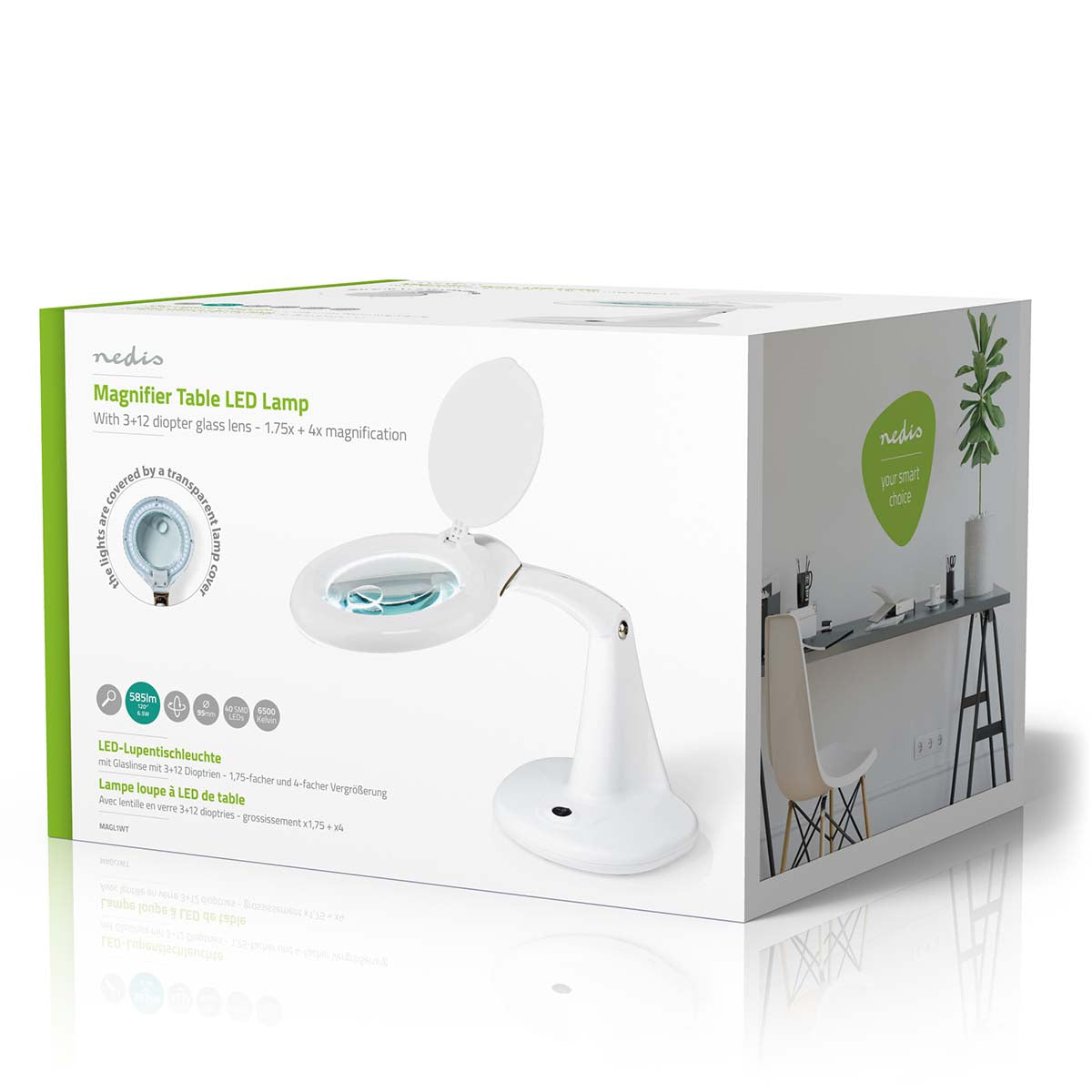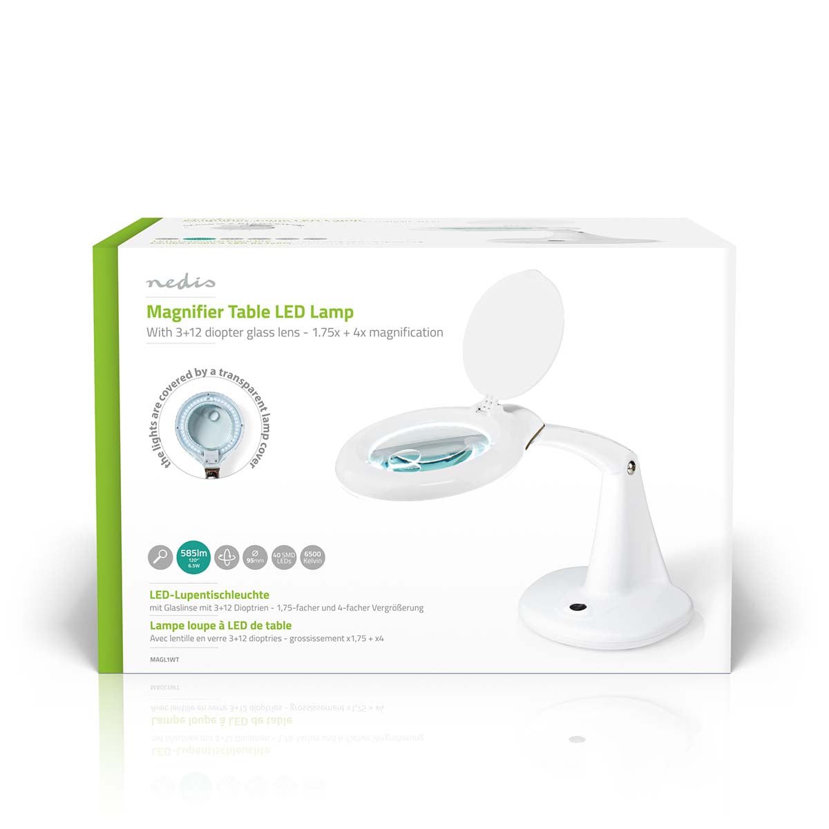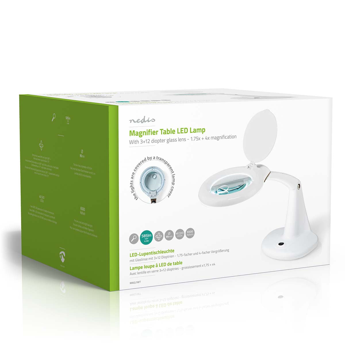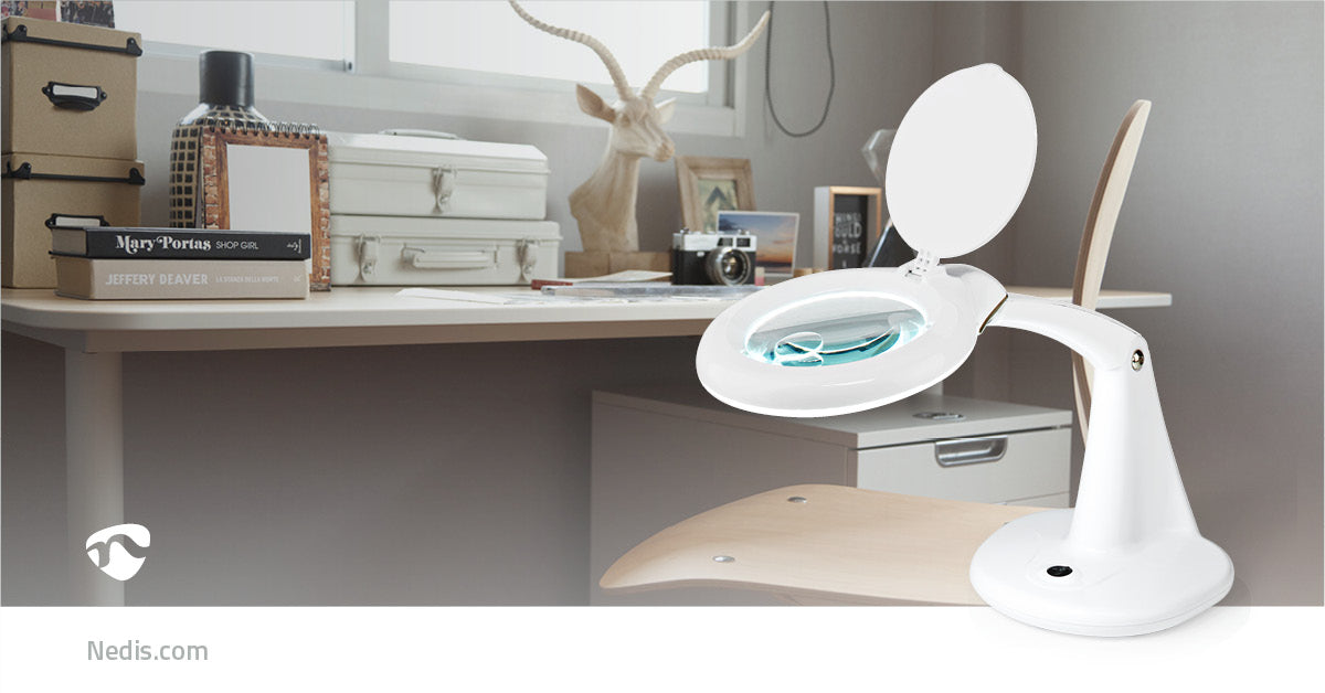 This compact Nedis white magnifying table lamp has a powerful 3+12 diopter glass lens which equals magnification of 1.75x + 4x. This is achieved by using a glass lens with a diameter of 95 millimetres. This makes this 6 Watt magnifying lamp ideal for close-up work, which enables you to see every detail. Suitable for at work and as well as for a hobby.