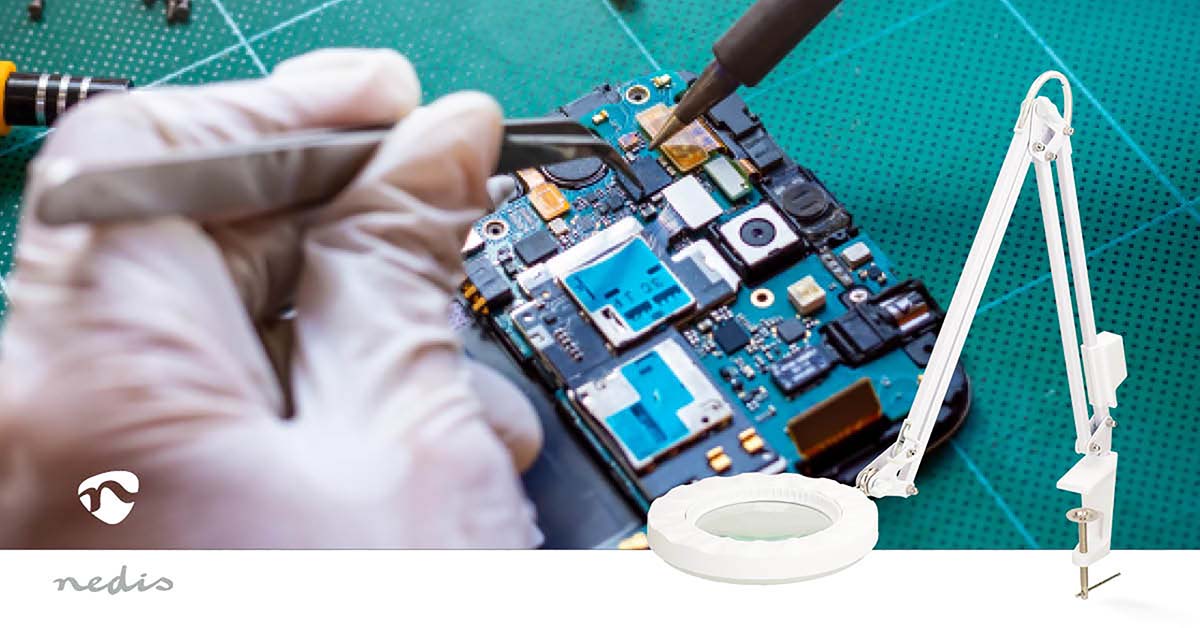 This Nedis magnifying lamp with table clamp is a perfect addition to any desk, ideal for detailed tasks around the home, in the workshop, or at the office. The SMD-LEDs are arranged in a circular pattern around the 100 mm lens, providing uniform illumination of your workspace with a cool white day light.
