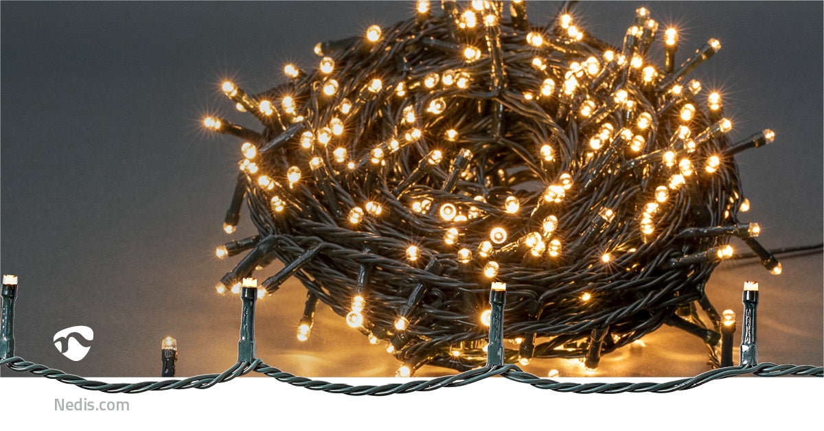 320 LEDs warm white light on 24m cord. 7 effects, timer & indoor/outdoor. Perfect Christmas atmosphere for tree or garden. Green cable is inconspicuous. 27m total length with 3m connection cord.