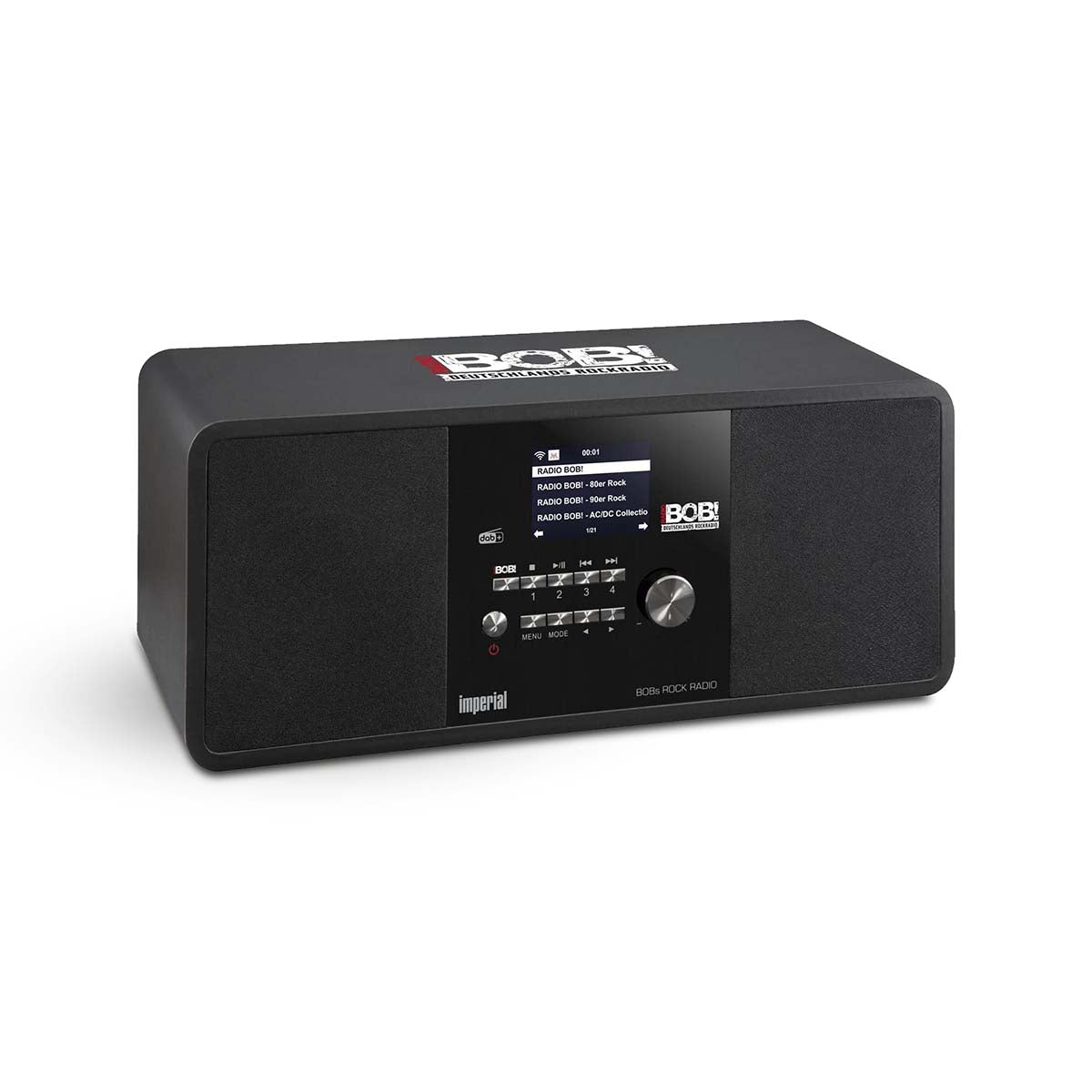 In addition to receiving digital DAB+ and analogue FM radio, the IMPERIAL BOBs ROCK RADIO is also suitable for internet radio. Connected to a home network with internet access, the stylish multifunctional radio has access to more than 30,000 web radio stations. UPnP/ DLNA enables the playback of music files stored externally in the network. Songs from a PC, Mac or smartphone can be played on the hybrid radio with just a few clicks. Thanks to the USB 2.0 interface, music files can also be accessed via USB. The two 3 inch speakers, each with 10 W power, perfectly integrated into the housing of the IMPERIAL BOB ROCK RADIO ensure the right sound. The stereo sound can be customized using various equaliser settings.
