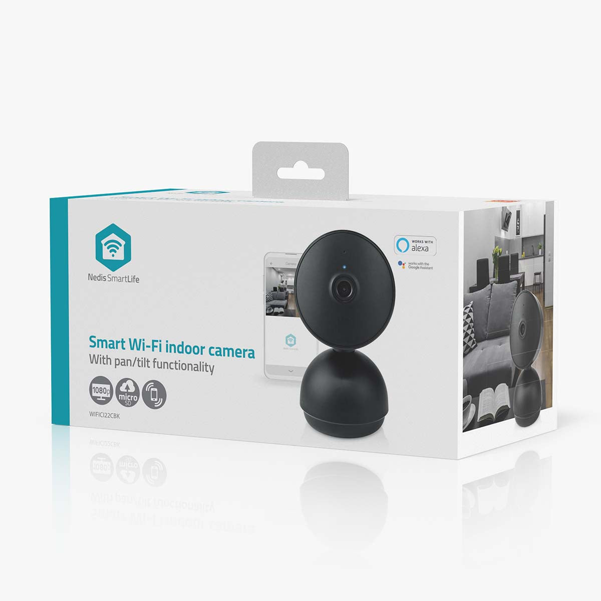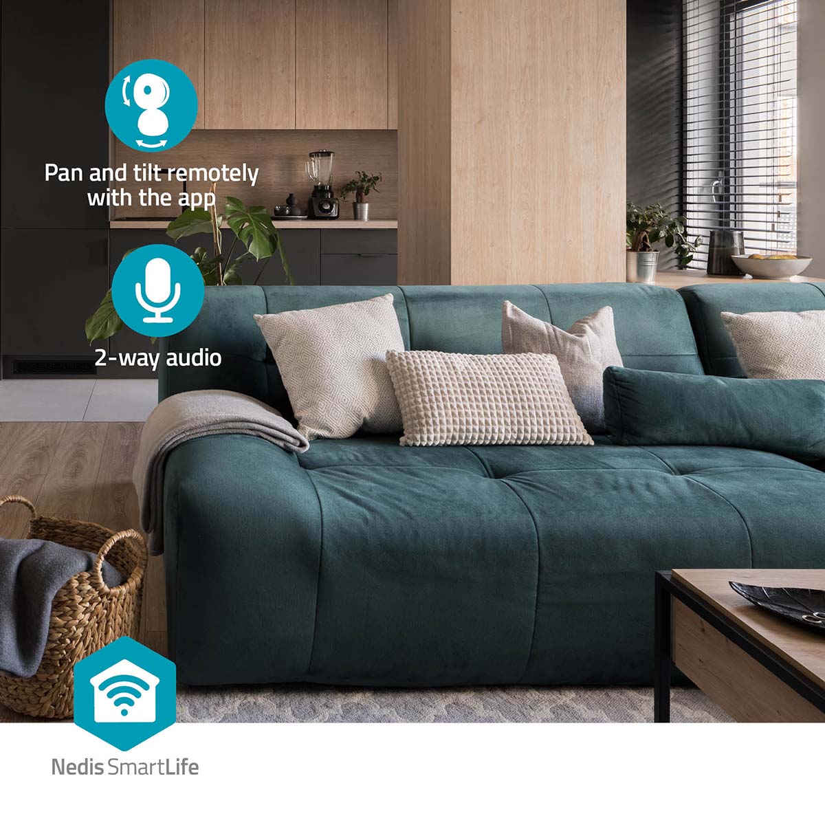 This easy to use Smart Indoor IP Camera with a pan and tilt functionality to cover the whole room can be simply connected to your existing Wi-Fi network to monitor rooms of your house and record any sound or motion, whether you are at home or on the road. The Nedis SmartLife app notifies you in case of movement and noise, so you can intervene in time.