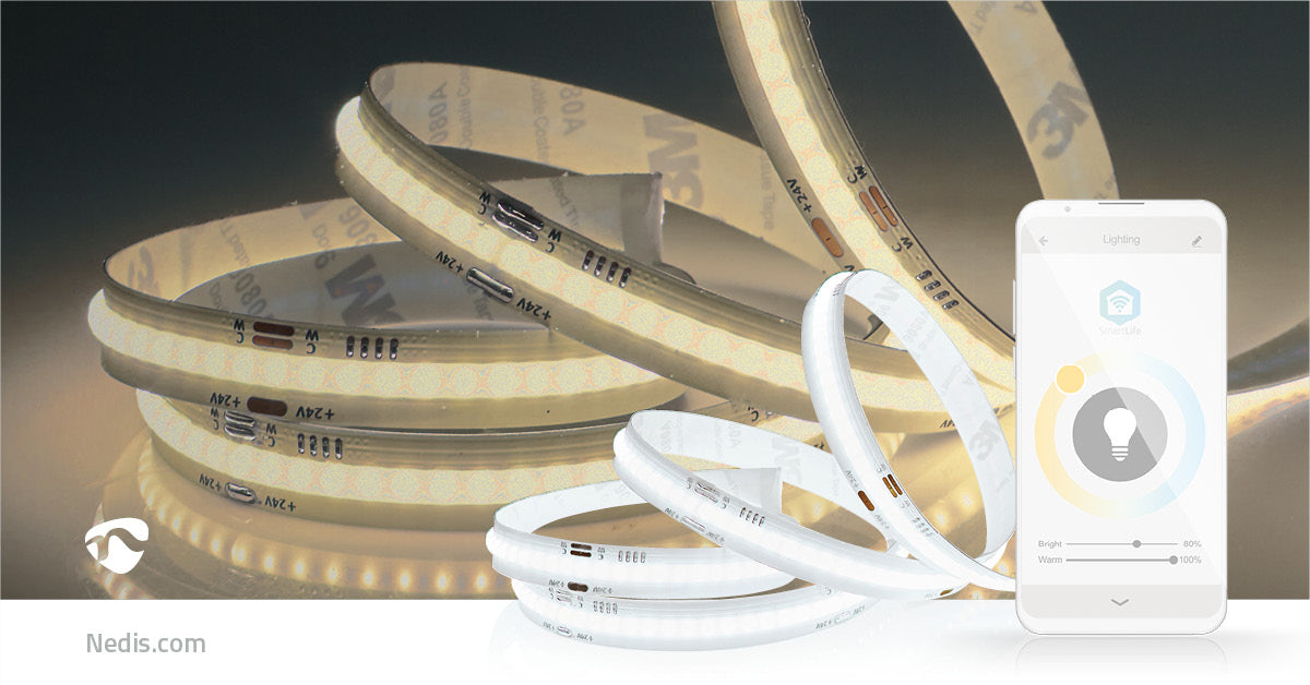 This Nedis ultra-thin COB LED strip can be used in any room and place in the house. Control it in the Nedis SmartLife application, set schedules or automations or use your favourite voice assistants to control the brightness of this COB LED strip. It connects directly to Wi-Fi, so no separate hub is required.