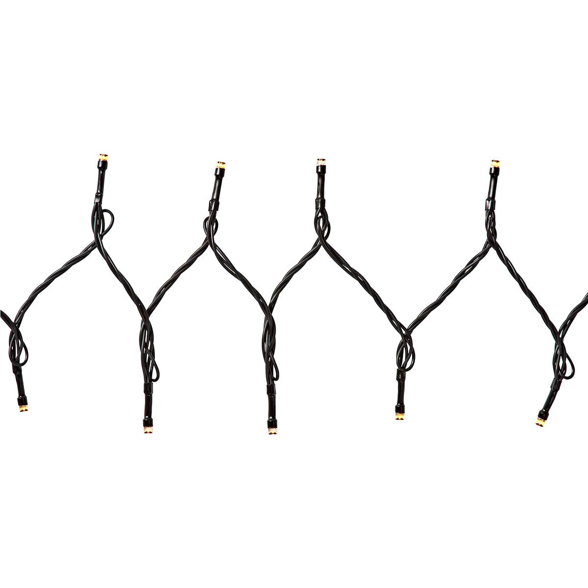 The black colour of the cable fits decently on every tree or background by not disturbing the optics. The 20-metre string contains a total of 200 LED lights that are mounted every 10 centimetres from each other. With a total of 5 metres, you will not be short of length with this power cord. Very convenient if your socket is just a little further away. The string can be used both indoors as well as outdoors.