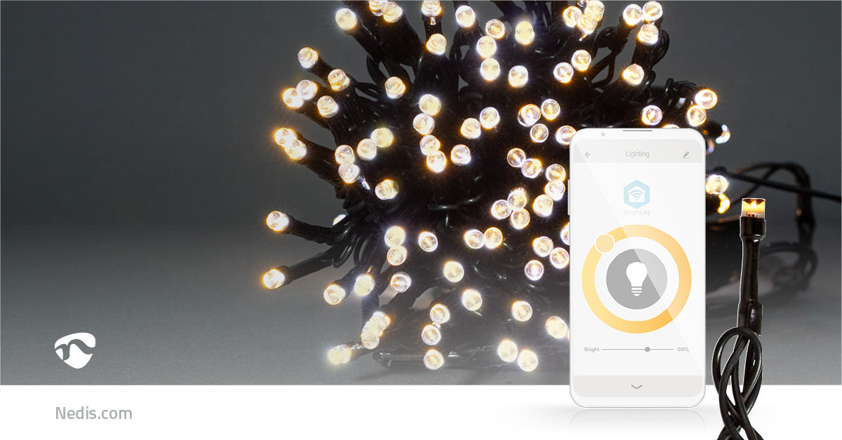 This easy to use warm white Smart Wi-Fi string of lights with a length of 20 metres brings the most advanced technology to your home decoration. Just put up your lights any way you want, straight, zig-zag or round-about and control it with the Nedis SmartLife app. You cannot only control the preferred brightness, but also choose one of the 7 pre-defined effects with different kinds of moving patterns or the steady mode in the app. For even more comfort, you can set timers and routines so your string of lights is always illuminated at the right time.