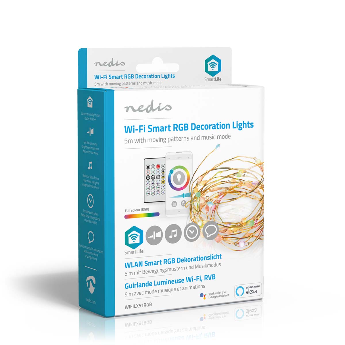 Make your decorations more festive than ever with this smart RGB string of lights. Besides free choice of any colour you can also set the brightness to your liking. Besides just changing brightness or colour, you can also set this string to show multicolour moving patterns or use the integrated microphone to have the lights respond to your music or other sounds.