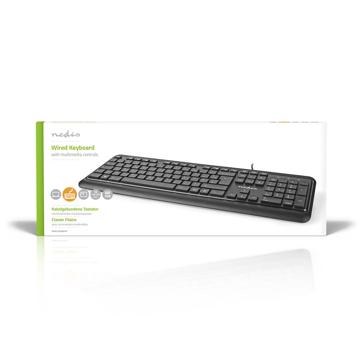 This Nedis multimedia keyboard has clearly readable and responsive keys. It has a 3-block standard keyboard layout and multimedia keys to let you access your favourite applications quickly. Simply plug it into a USB port on your desktop, laptop, or computer and start using it right away. Thanks to its anti-skid feet, you can stably position the keyboard on your desk.