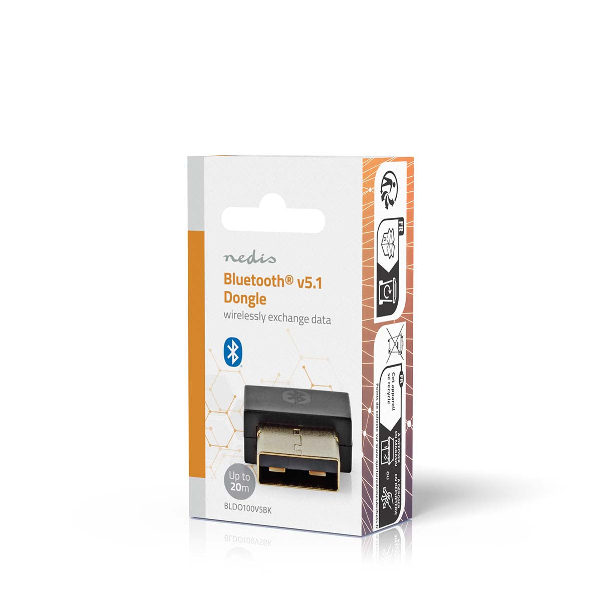 This Nedis USB 2.0 Bluetooth® 5.1 mini dongle enables wireless communication or data transfer, for example between two PCs or a PC and a mobile phone or network. Installation is only a matter of Plug & Play. This dongle has a range of up to 20 metres, supports Bluetooth® voice data, and is ideal to use in combination with a notebook thanks to the small design and low energy usage. The dongle can be used for a variety of functions, such as data upload and download from, for instance, your smartphone, tablet or notebook.
