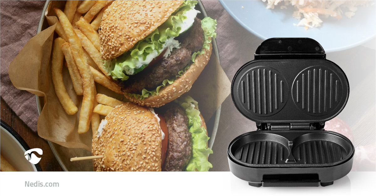 Enjoy homemade burgers according to your favourite recipe with this Nedis hamburger grill.