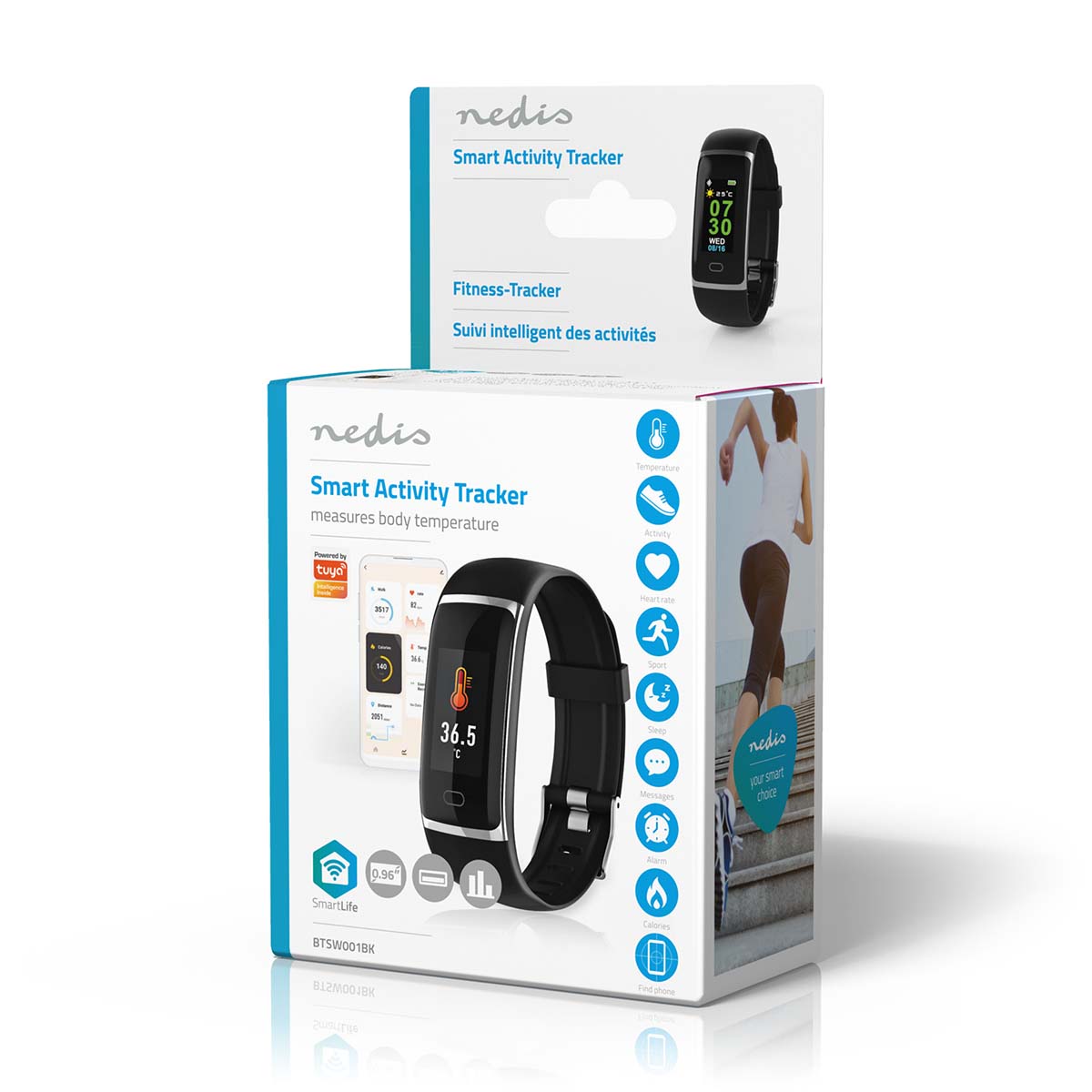 This smart activity monitor installs into the free Nedis SmartLife app, where you can see all graphs and details about your workout or daily routines.